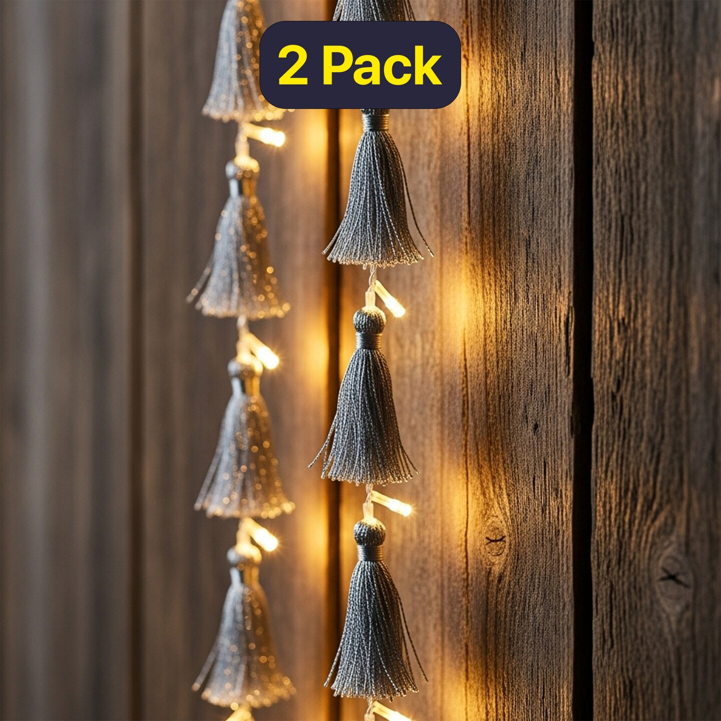 Boho Tassel Fairy String Light – 20 LED Warm Lights with Soft Grey Tassels