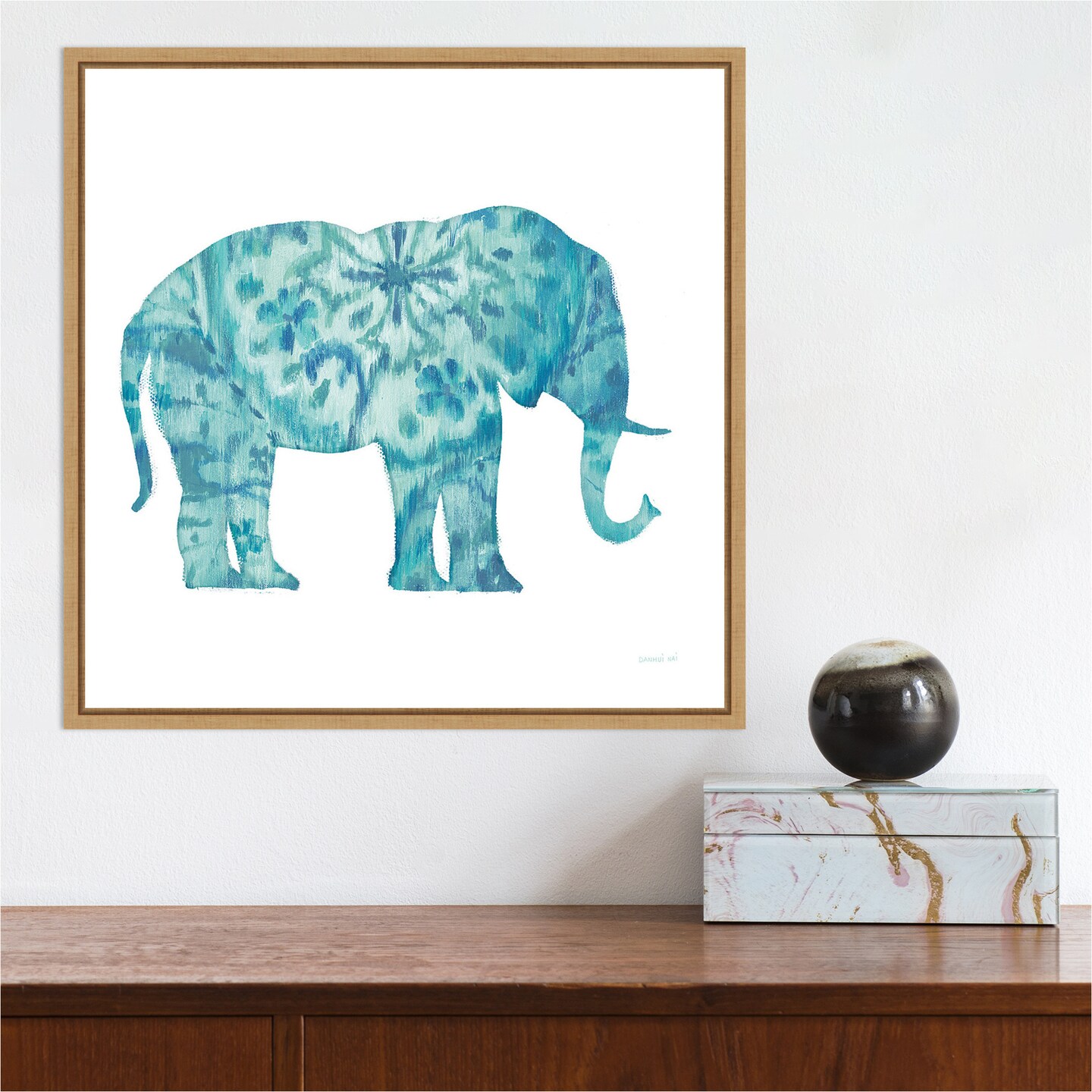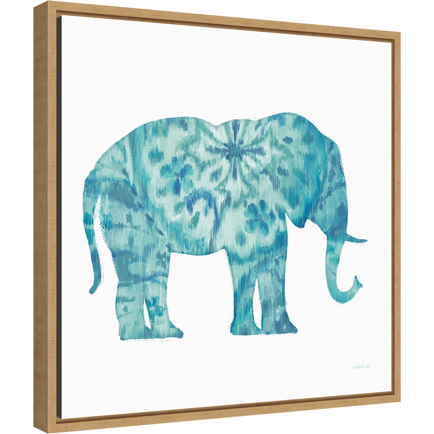 Boho Teal Elephant I by Danhui Nai 16-in. W x 16-in. H. Canvas Wall Art Print Framed in Natural