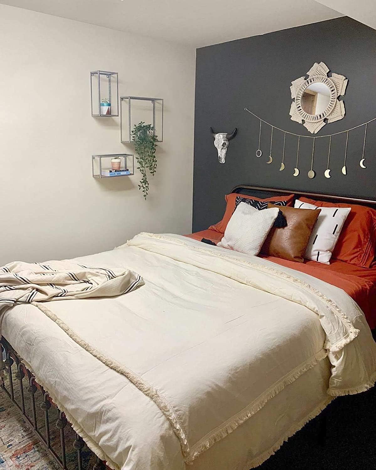 Boho Wall Mirror Decor Round Macrame Hanging Wall Art Decoration|Ivory