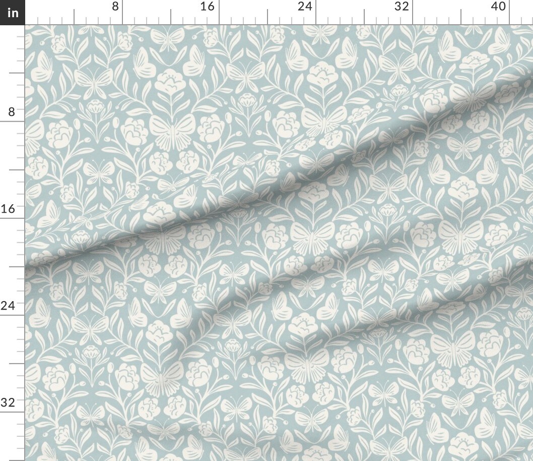 Boho Whimsical Cottagecore Butterfly Floral Wildflowers Blue Garden Medium Scale Pale William Morris Butterflies Custom Printed Fabric by Spoonflower Various Fabrics by the Yard or Fat Quarter