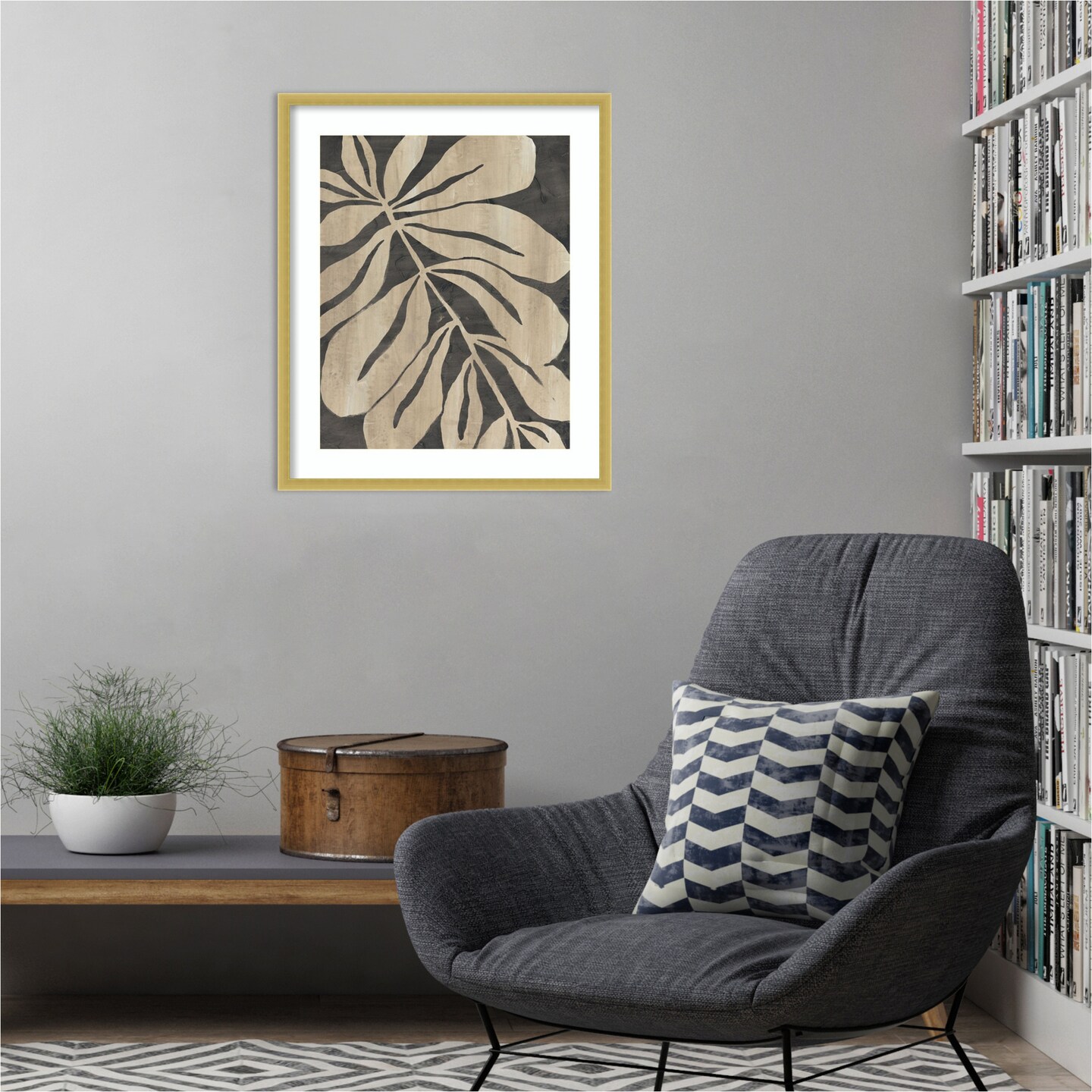 Bold Leaf Fossil I by June Erica Vess Wood Framed Wall Art Print