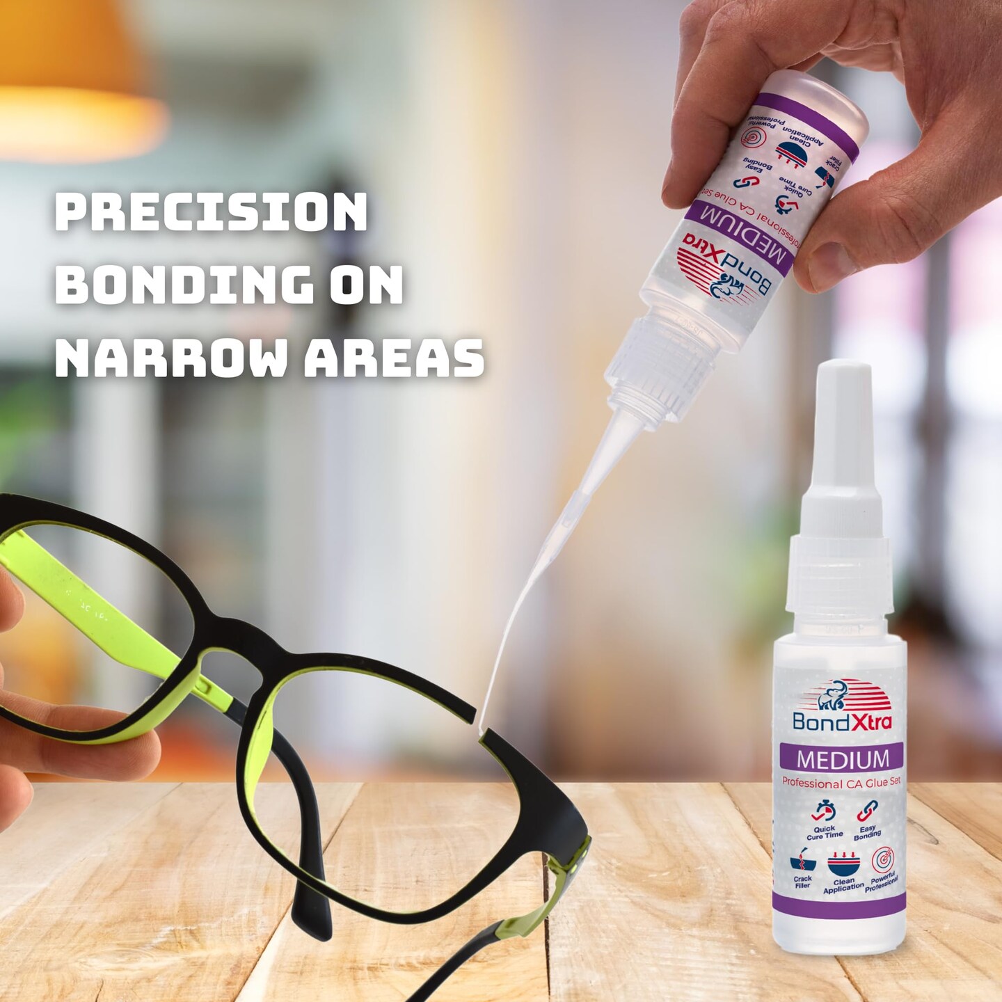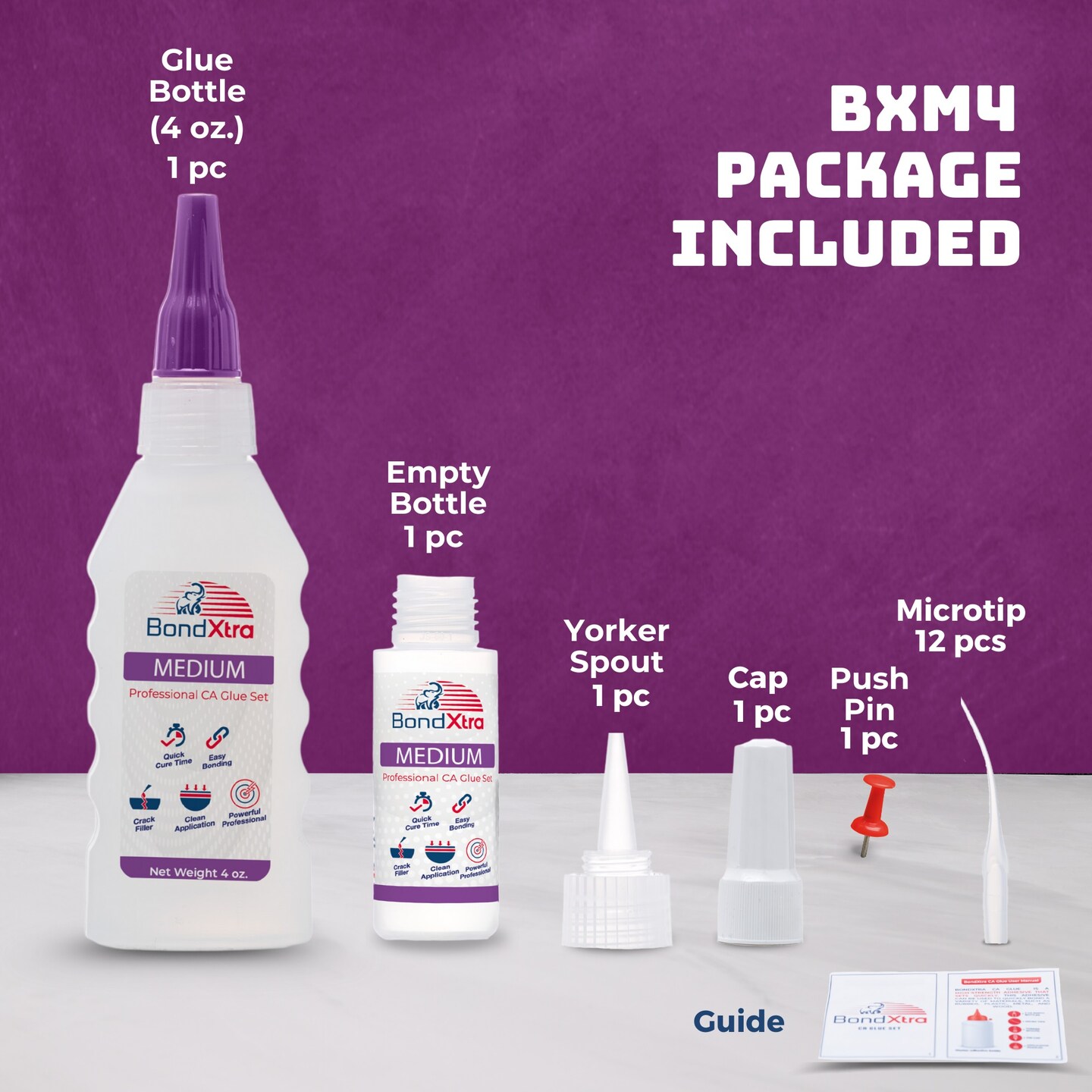 BONDXTRA BXM4 Medium CA Glue 4 oz. Set – Premium Super Glue Kit for Woodworking, Crafts & DIY, Fast-Drying, Clear Cyanoacrylate Adhesive with Microtips