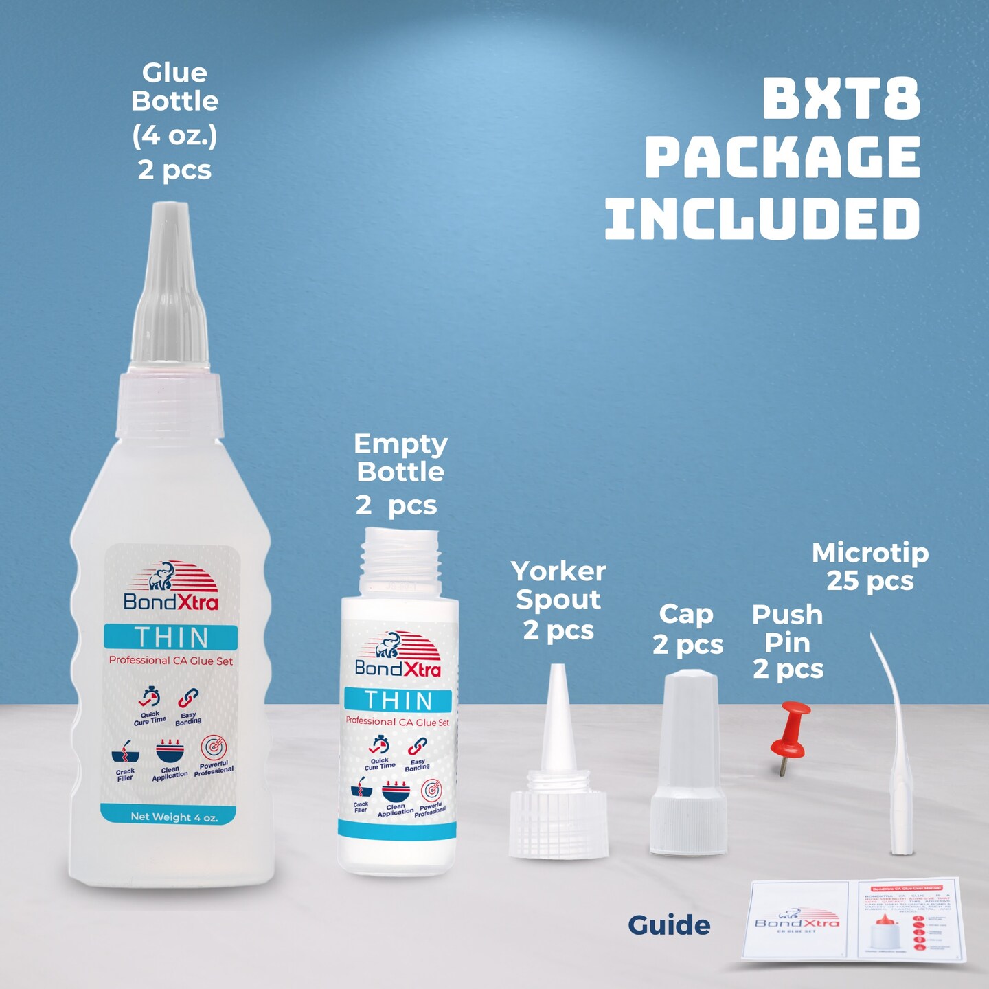 BONDXTRA BXT8 Thin Viscosity CA Glue 8 oz. Set – Premium Super Glue Kit for Woodworking, Crafts & DIY, Fast-Drying, Clear Cyanoacrylate Adhesive with Microtips