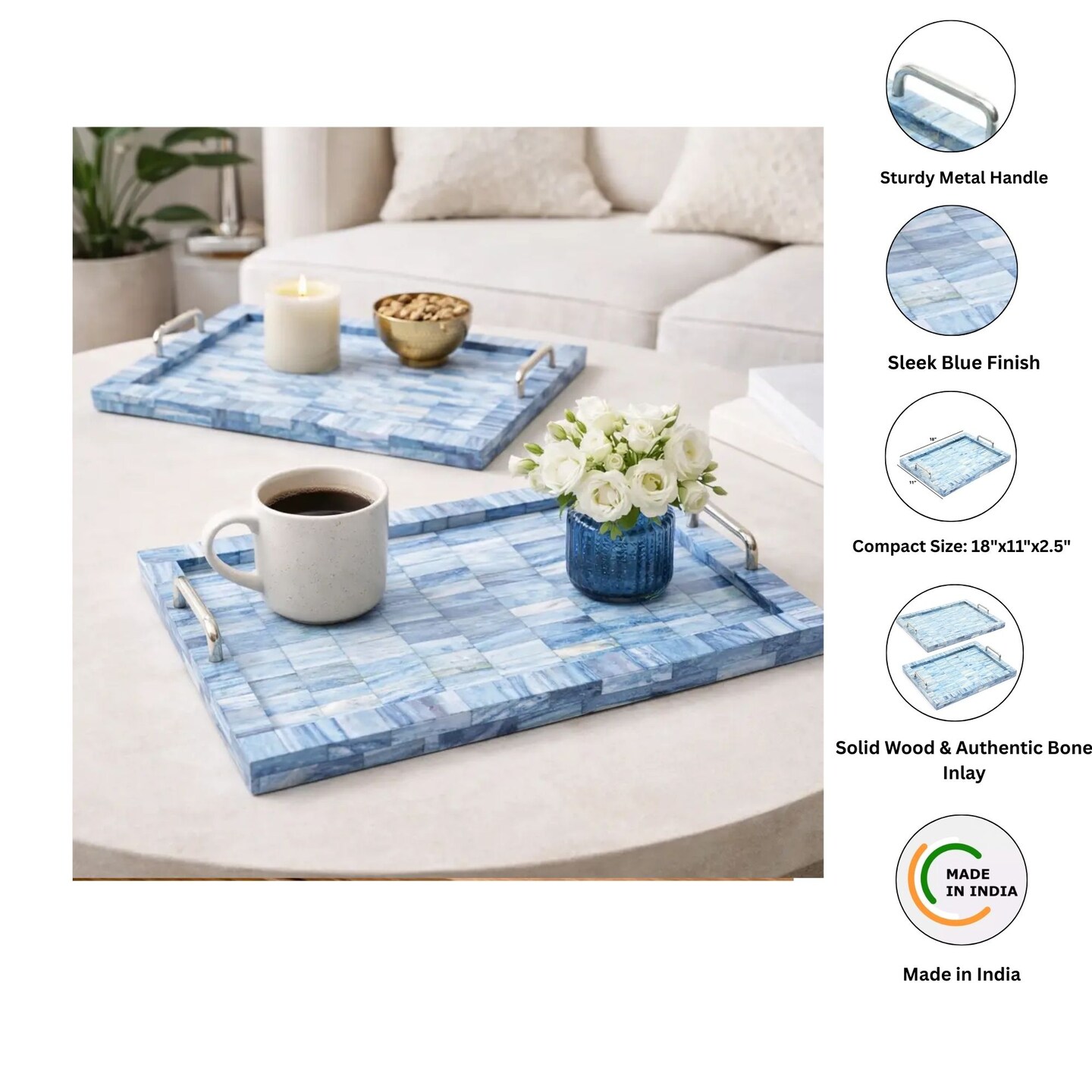 Bone Decorative Tray-Set Of 2