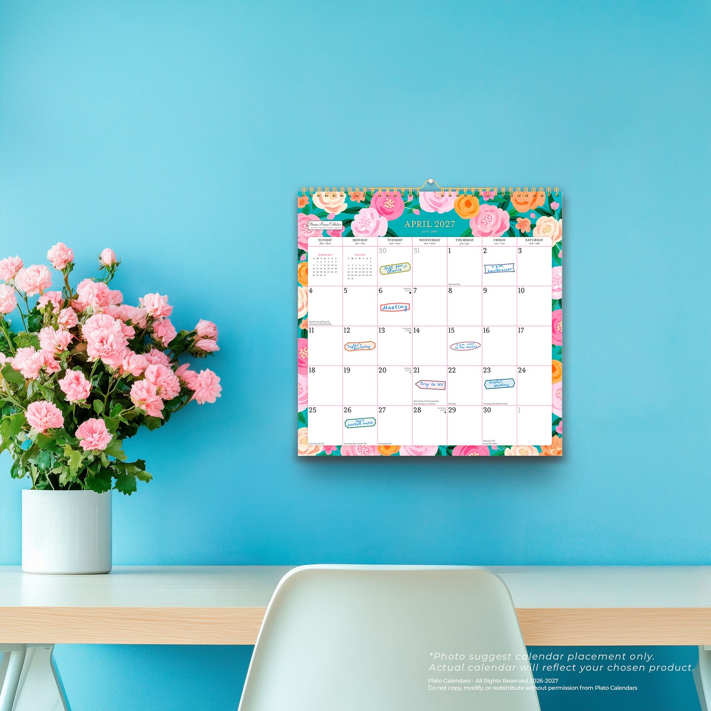 Bonnie Marcus OFFICIAL | 2027 12 x 12 Inch (Hanging) 18 Months Monthly Square Wire-O Calendar | Sticker Sheet | July 2026 - December 2027 | Plato | Fashion Designer Stationery