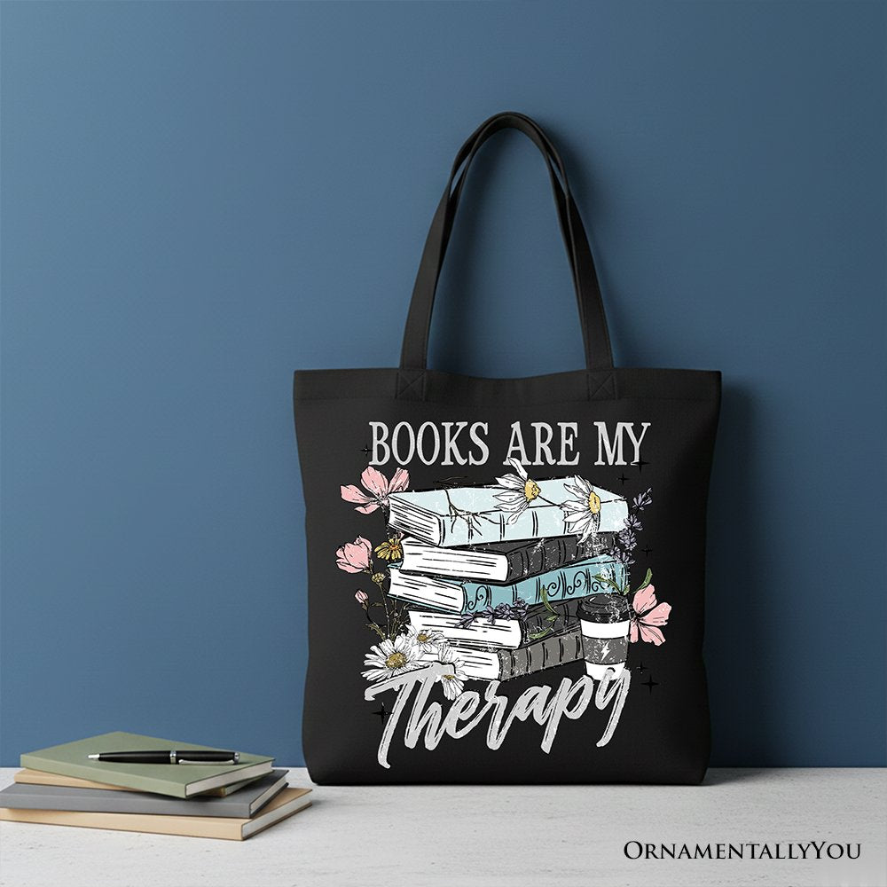 Books Are My Therapy Floral Vintage Canvas Tote Bag, Reading Aesthetic Gift Shopper for Bookworms