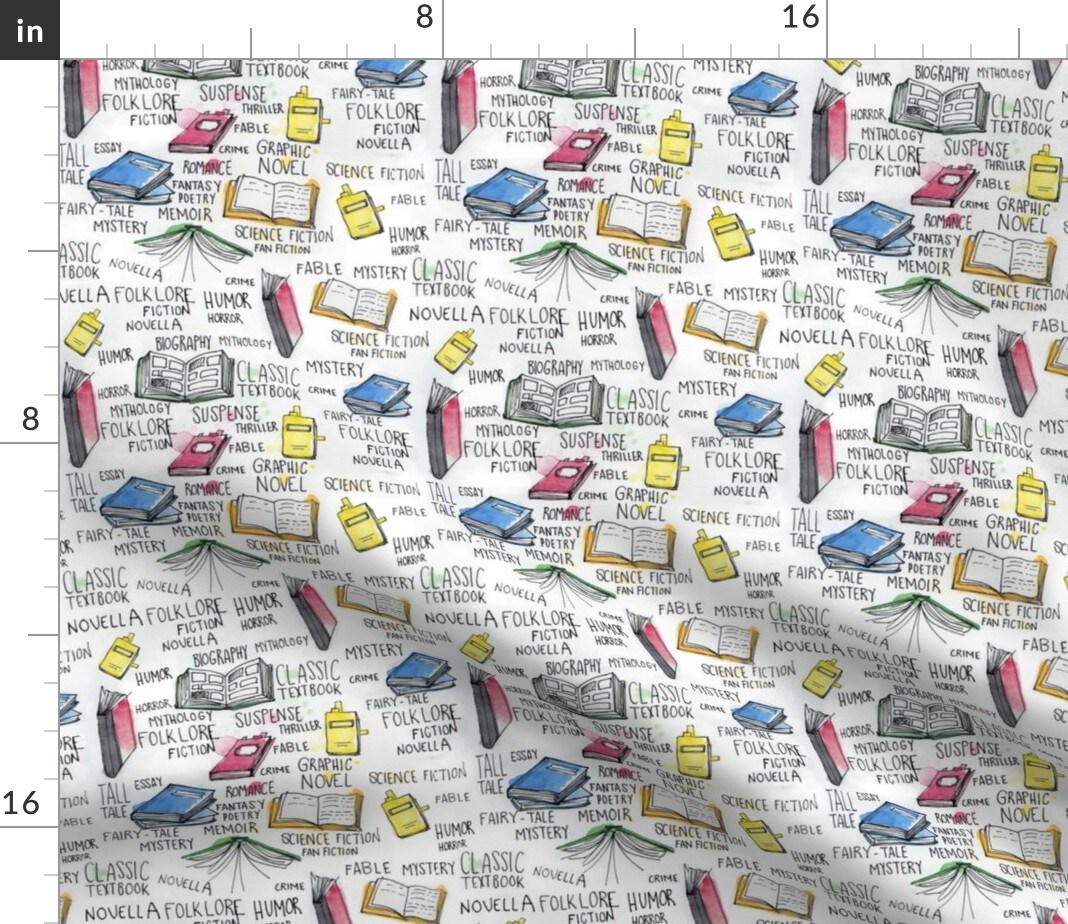Books Watercolor Pen Ink Illustration Literary Nerd Library Book Custom Printed Fabric by Spoonflower Various Fabrics by the Yard or Fat Quarter