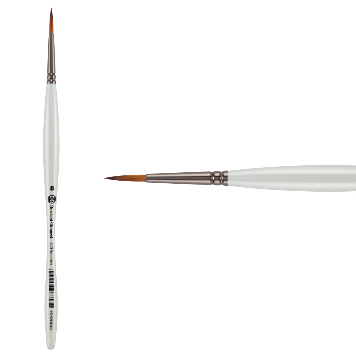 Borciani e Bonazzi Unico Fiamatto Synthetic Series 820 Paint Brush, Round Size 8 - For Acrylic and Watercolor Painting - Ergonomic Handle, Animal-Friendly, Brass Ferrule, Handcrafted in Italy