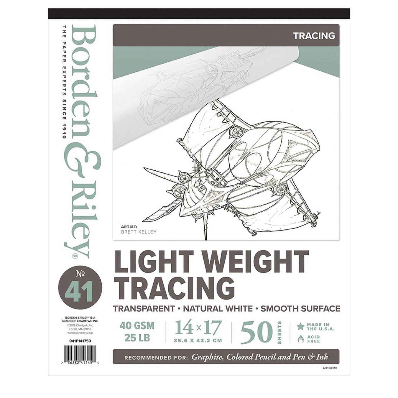 Borden & Riley #41 Monroe Triple T Parchment Tracing/Light Paper Pad, 40 GSM/25 lb., 1 Pad Each