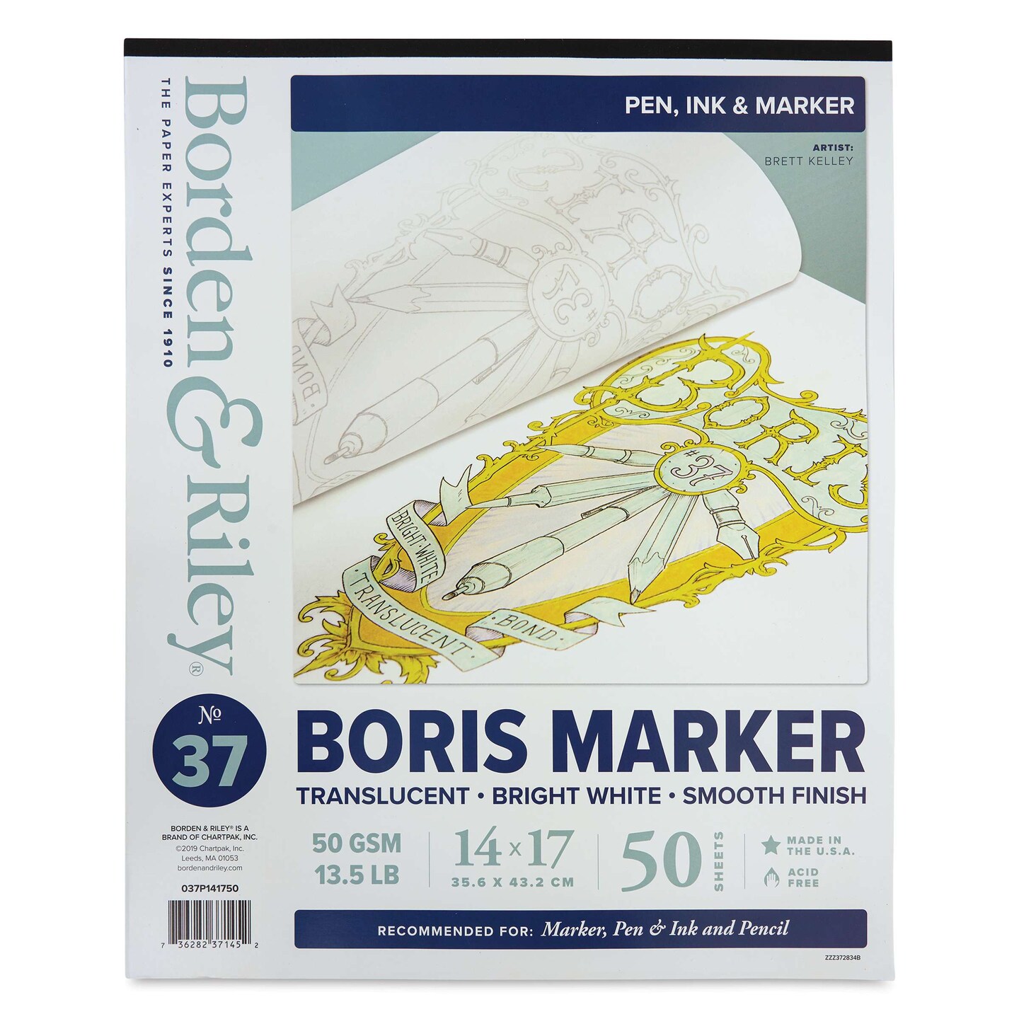 Borden & Riley Boris Marker Paper Pad - 14" x 17", 50 Sheets