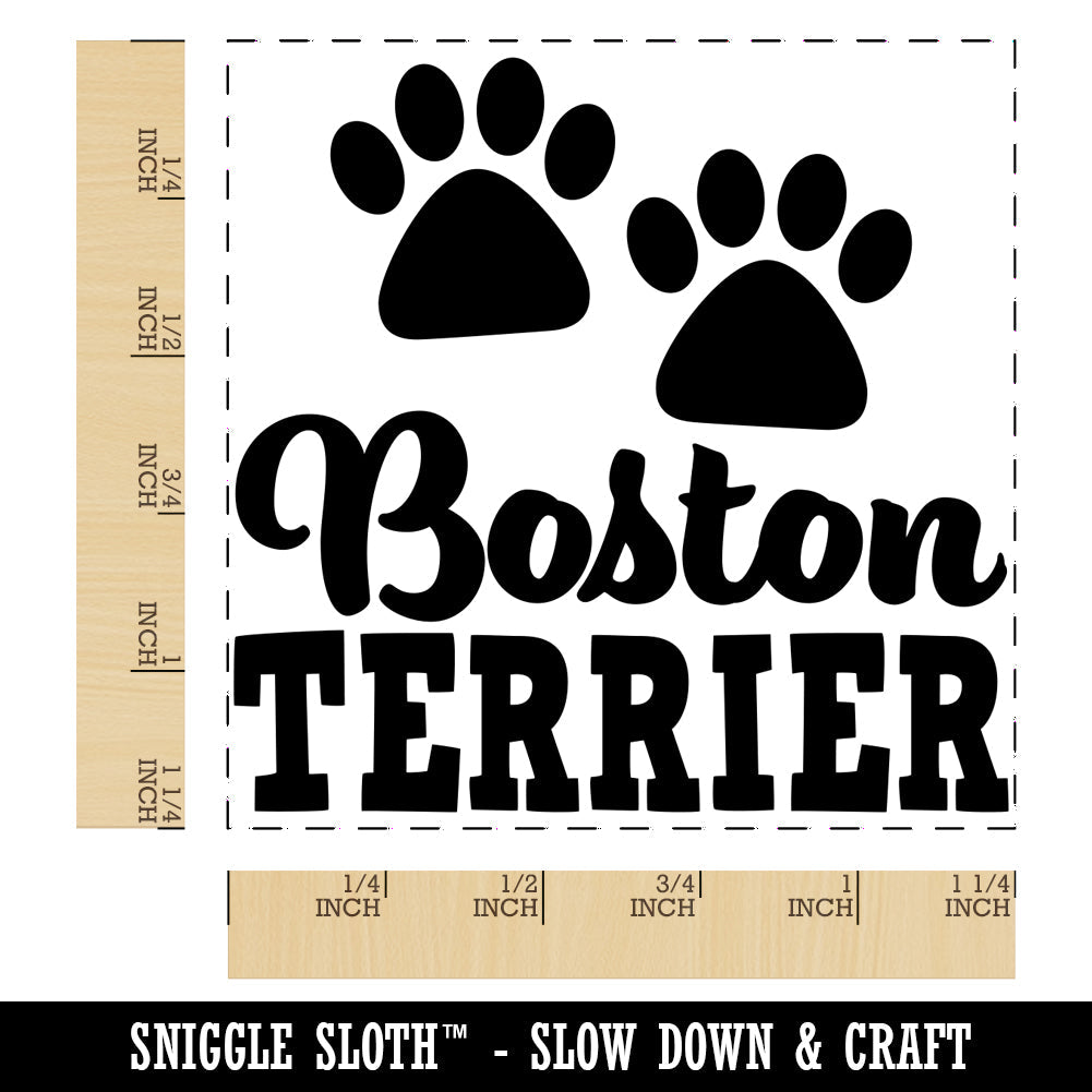 Boston Terrier Dog Paw Prints Fun Text Square Rubber Stamp for Stamping Crafting