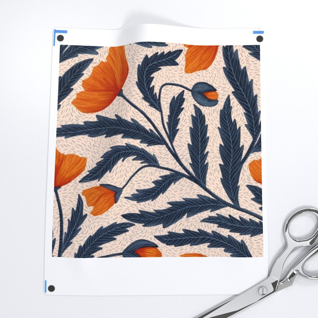 Botanical Chintz Florals Watercolor Poppies Orange Poppy Hand Drawn Vines Custom Removable Wallpaper by Spoonflower Peel & Stick Wallpaper 2FT Wide