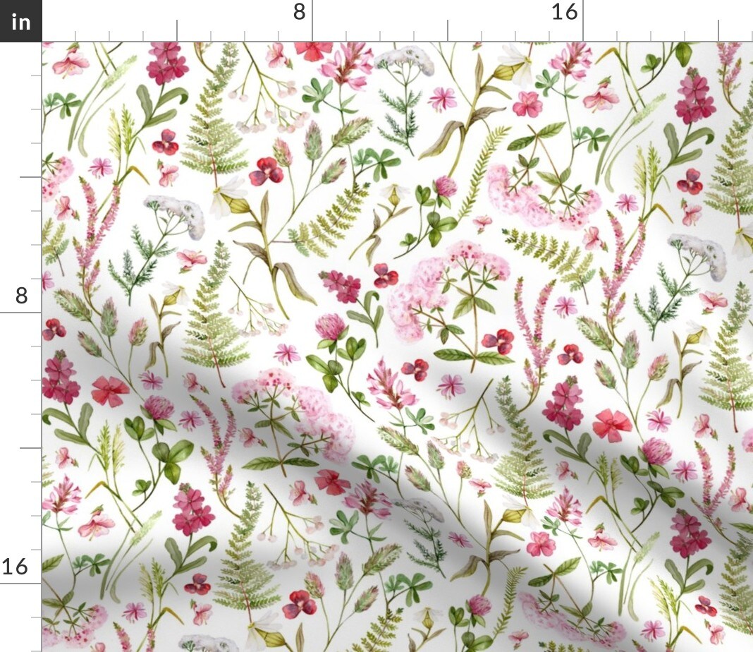 Botanical Garden Floral Summer Tea Party Cottagecore Pink Custom Printed Fabric by Spoonflower Various Fabrics by the Yard or Fat Quarter