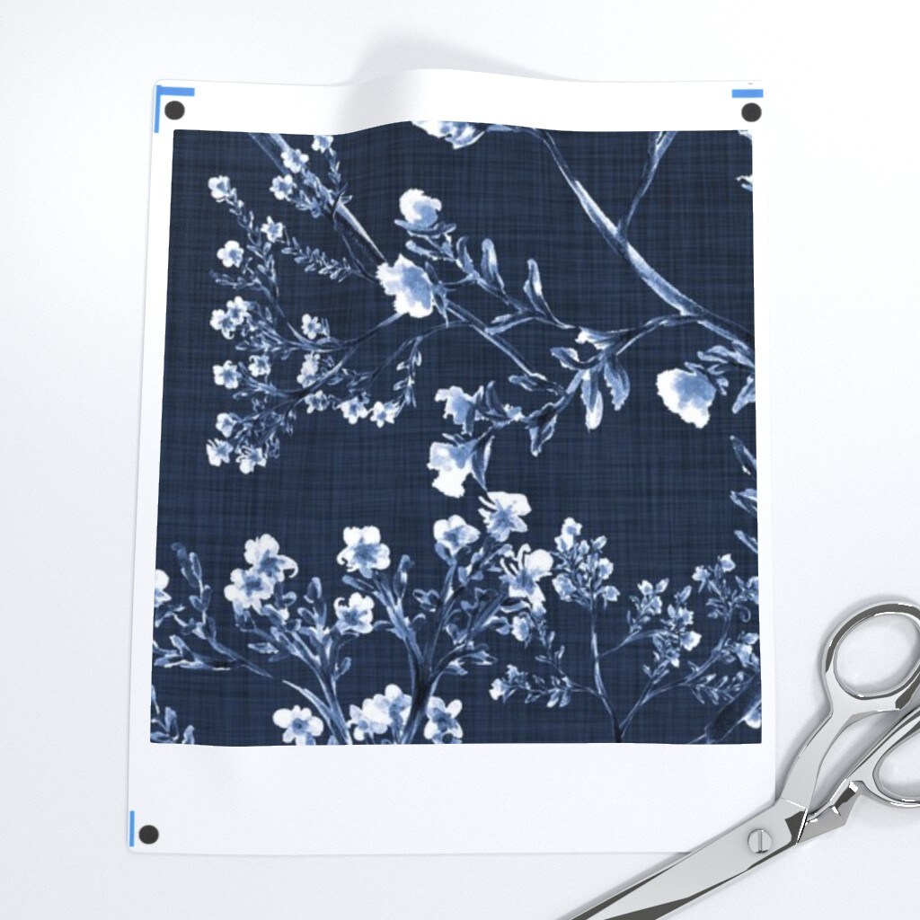 Botanical Toile Traditional Classic Large Scale Dark Blue Garden Floral Custom Printed Fabric by Spoonflower Various Fabrics by the Yard or Fat Quarter
