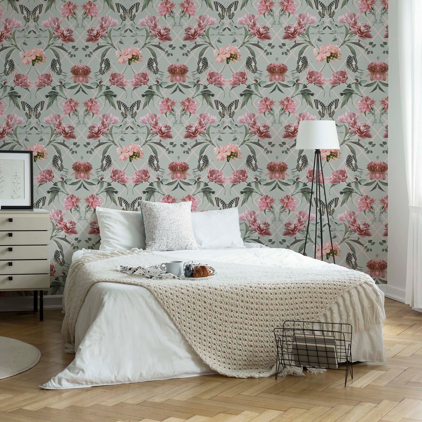 Botanical Trellis Grey and Pink Wallpaper