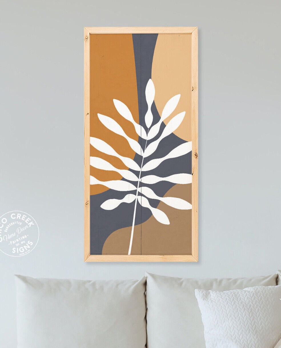 Botanical Wall Art Neutral Wood Sign Framed Mid Century Decor