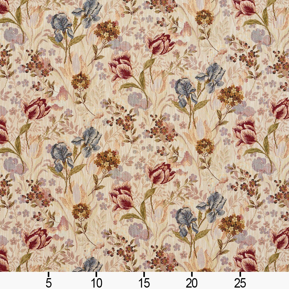 BOUQUET - Beige/Tan/Taupe, Brown, Coral/Orange/Persimmon, Blue, Gold/Yellow Floral Upholstery Fabric 54 Inches"