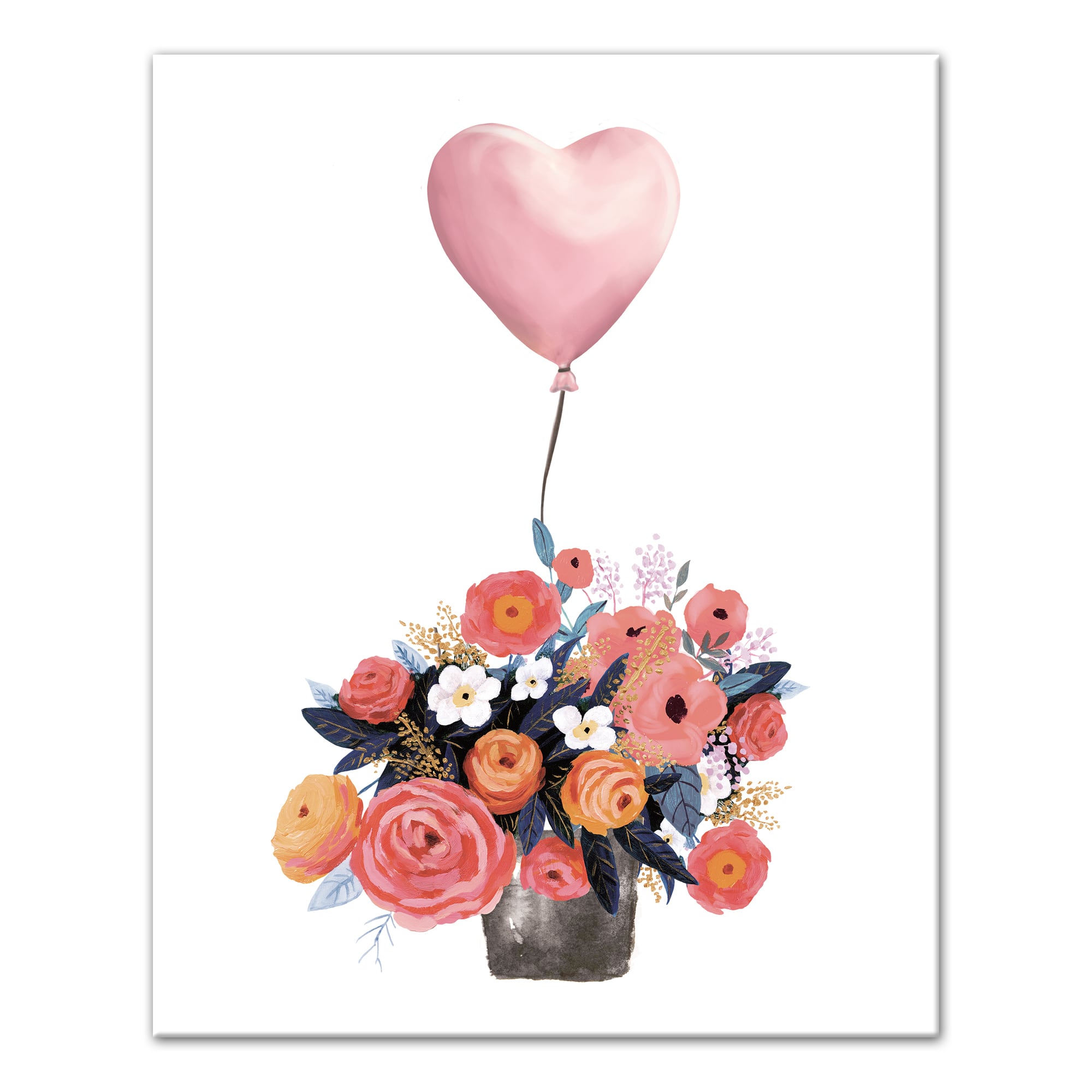 Bouquet of Flowers with Heart Balloon Canvas Wall Art