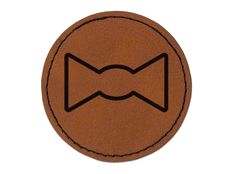 Bow Tie Outline Round Iron-On Engraved Faux Leather Patch Applique - 2.5"