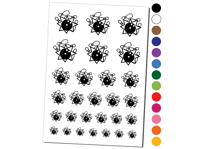 Bowling Ball Strike Pins Temporary Tattoo Water Resistant Fake Body Art Set Collection