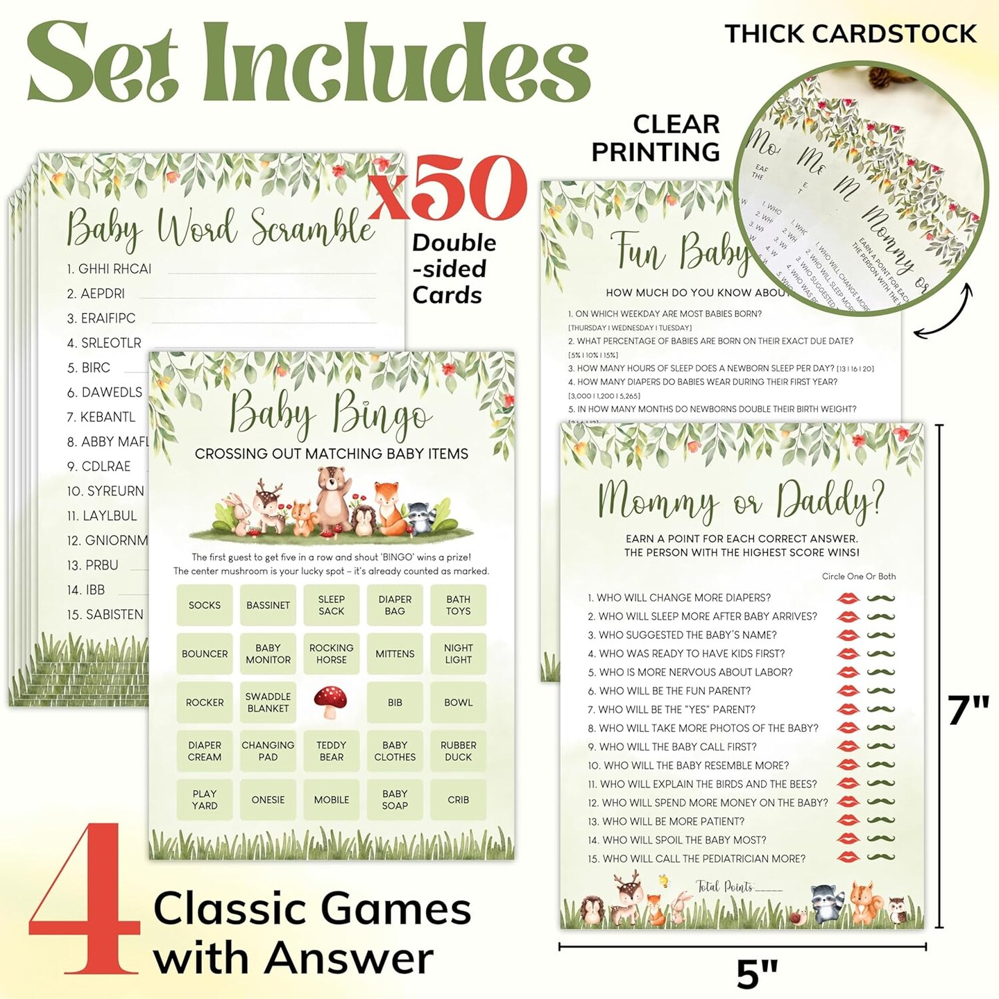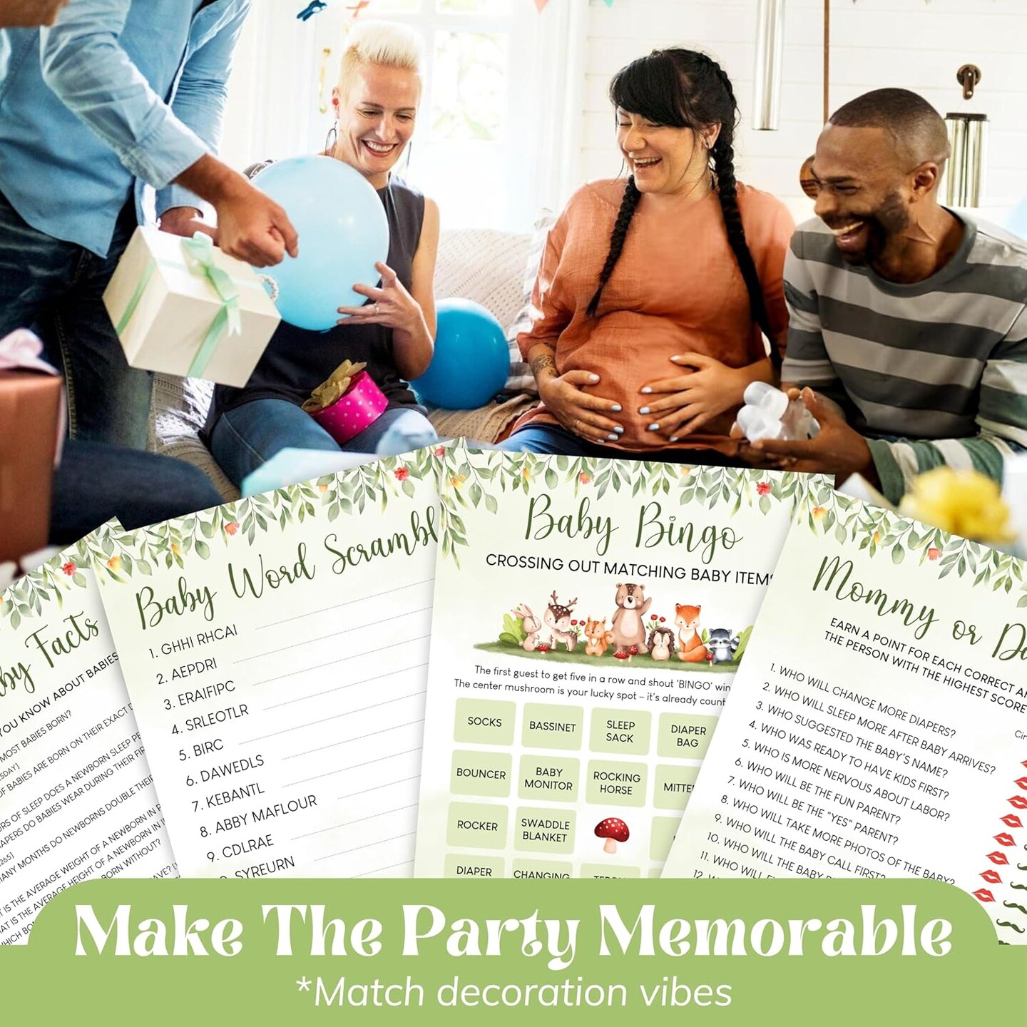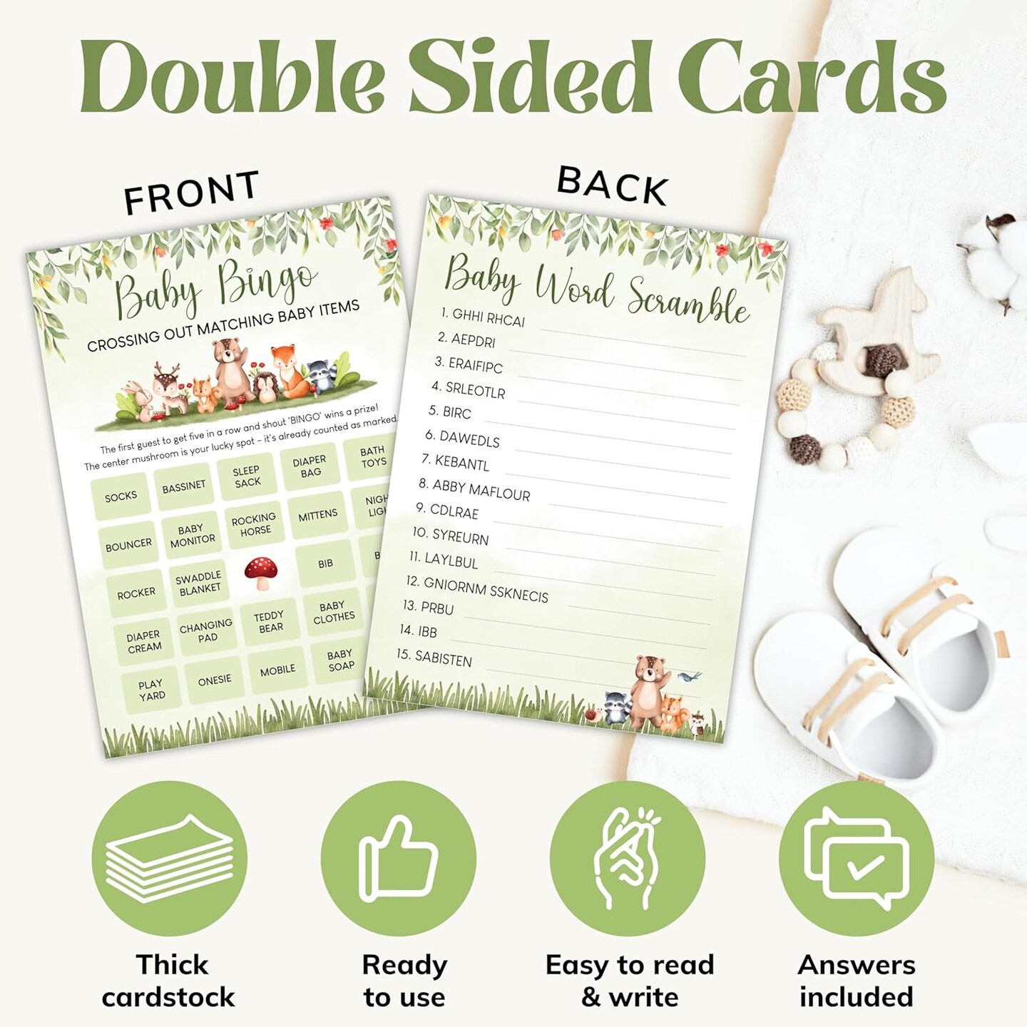 Boy’s Forest Baby Shower Game Set – Bingo, Word Scramble & More for 25 Guests