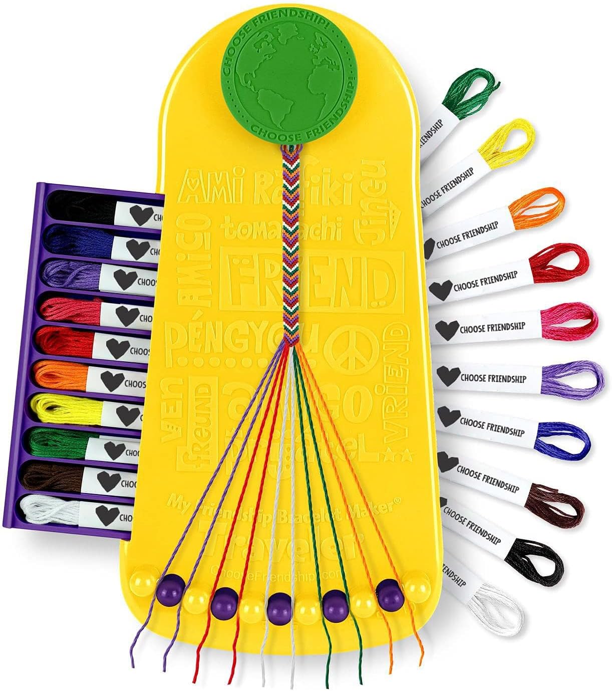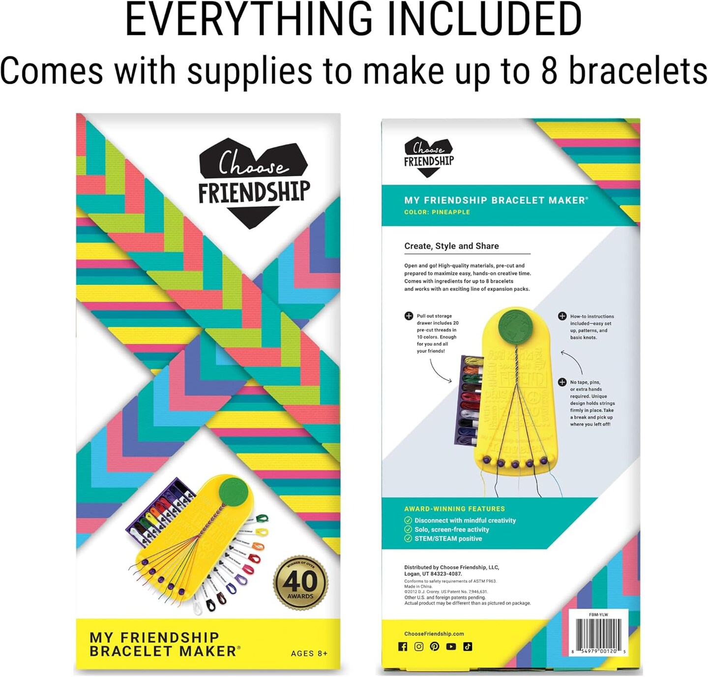 Bracelet Making Kit – 20 Pre-Cut Threads, Portable Loom with Storage, Makes 8 Bracelets, Craft Gift for Kids Ages 8+, Yellow “Pineapple”