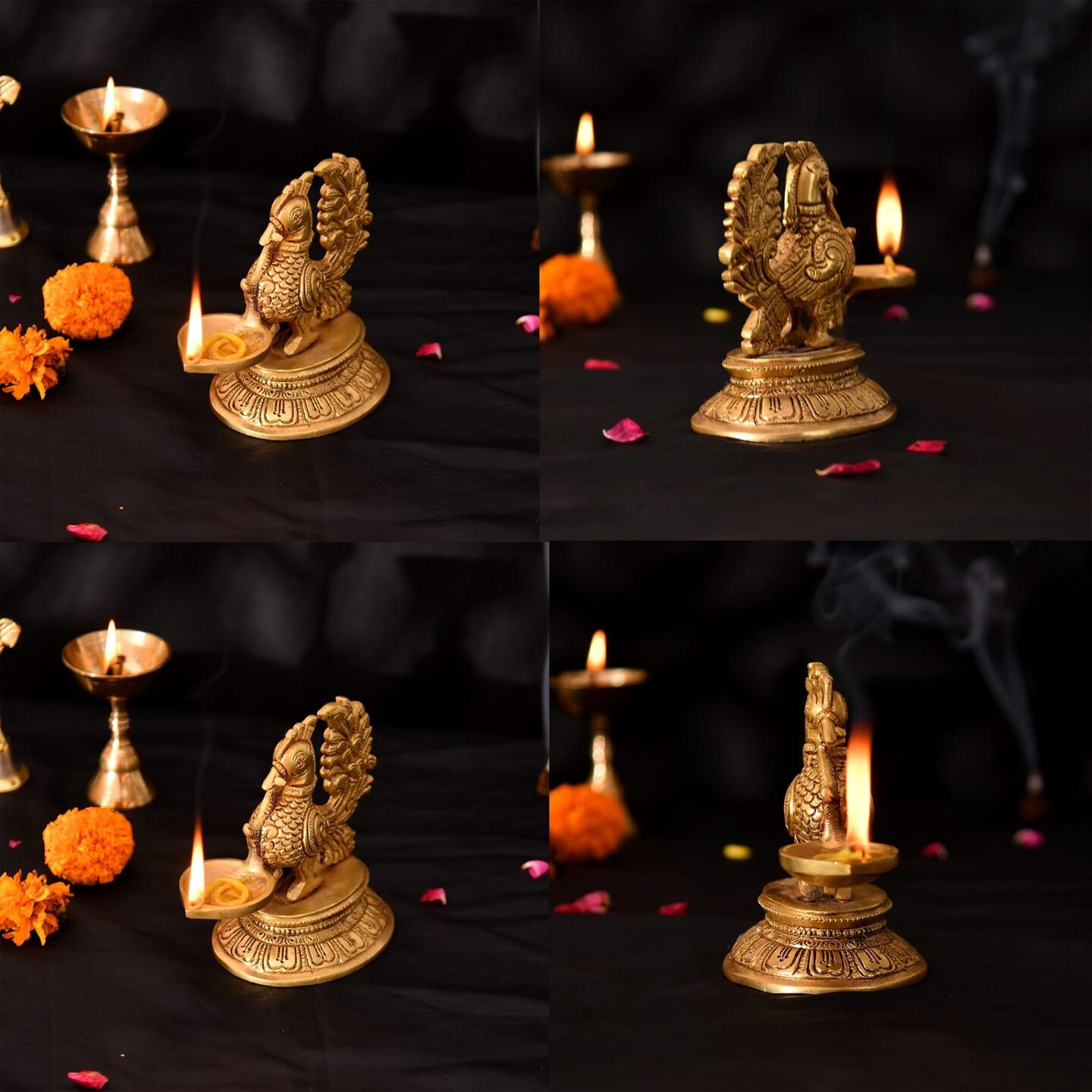 Brass Peacock Diya Annam Deepak Idol Oil Lamp Deepam with Base for Home Temple Mandir Office Diwali Decoration Kathu Vilakku Puja Diya - Deepawali Housewarming Return Gift