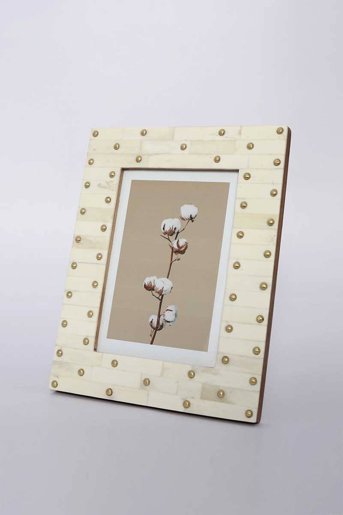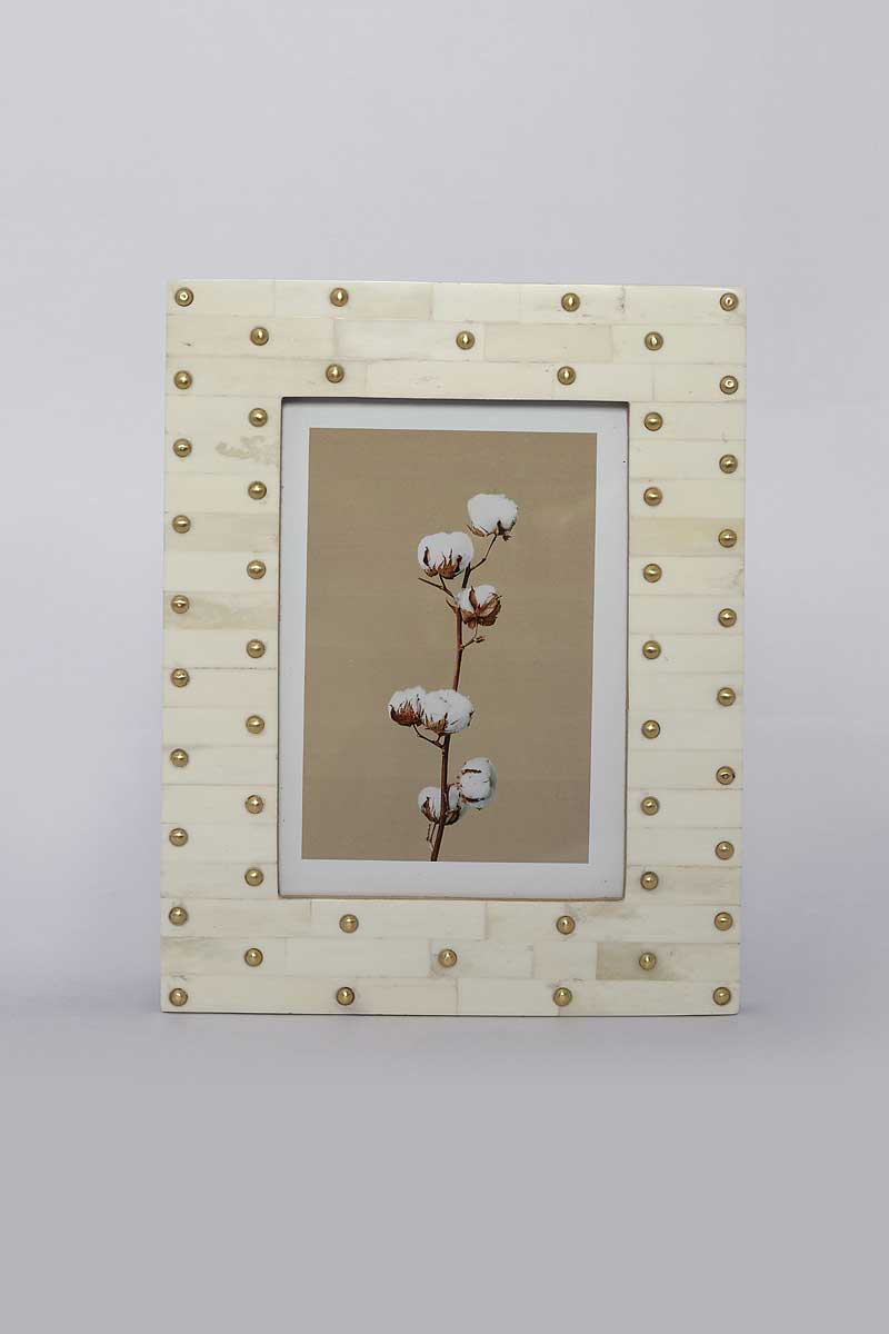 Brass-Studded Ivory Bone & MDF Photo Frame – 5x7” – Elegant & Timeless Décor