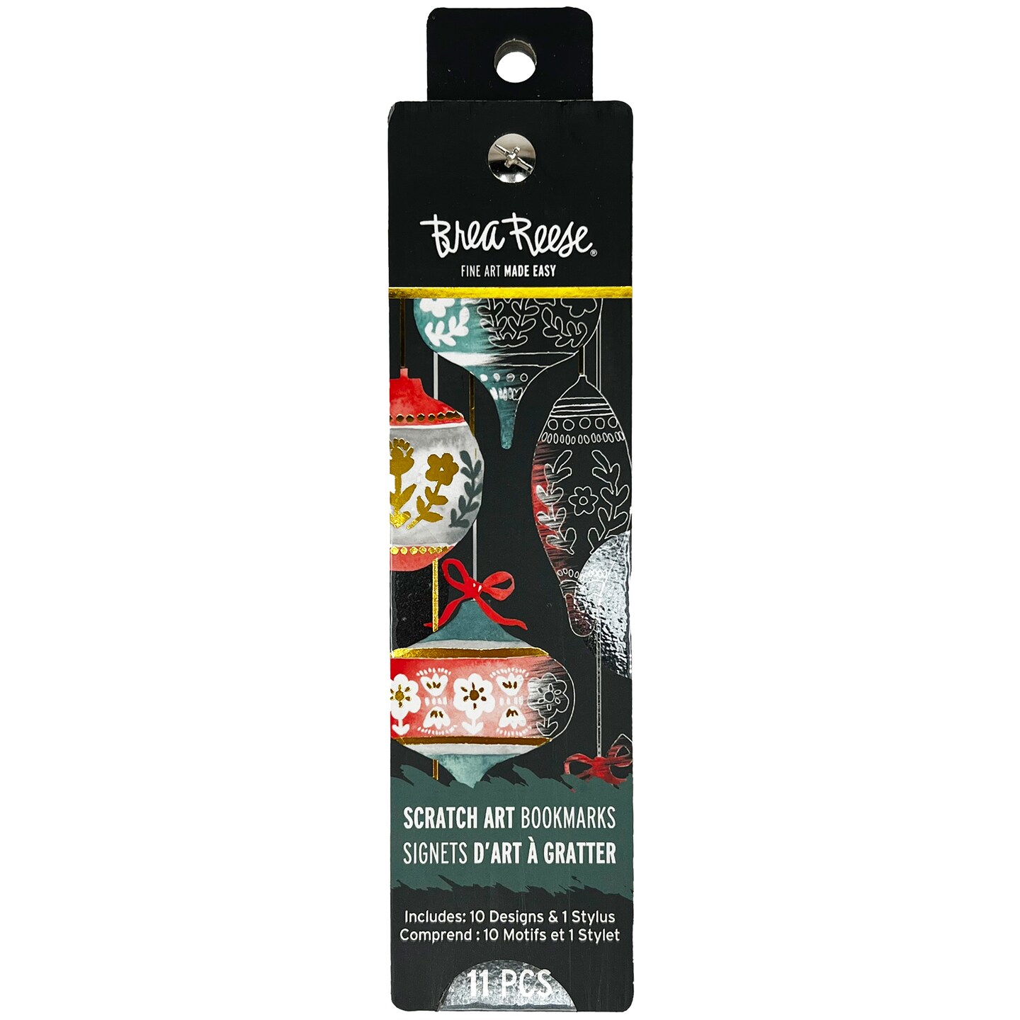 Brea Reese: Scratch Art Bookmark Kit - Ornaments - 10 Holiday-Themed Bookmarks, Wooden Stylus, Metallic Accents, Guided Art, DIY Christmas Adult Craft