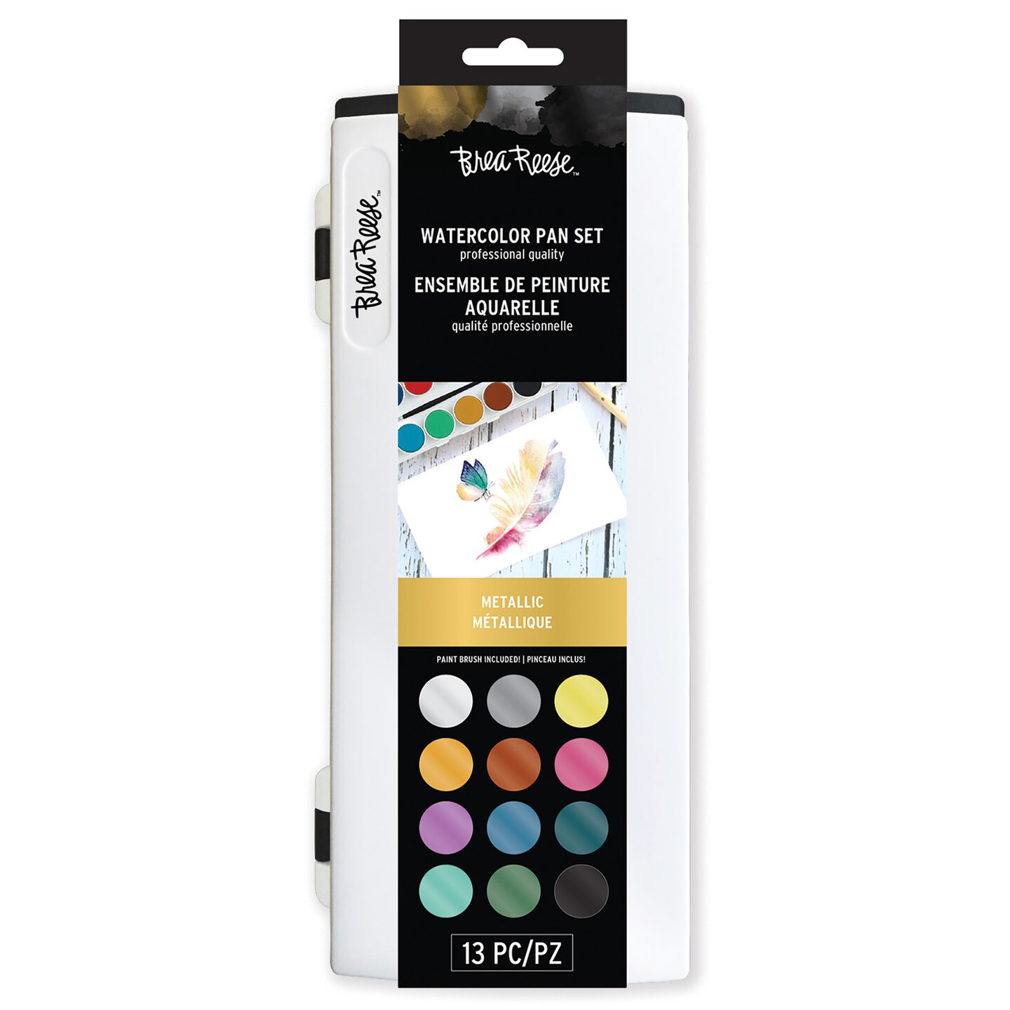 Brea Reese: Watercolor Pan Set - 12 Metallic Colors - Vibrant Shimmer, Matte Finish, Easy-To-Blend, Acid-Free & Non-Toxic, Portable Adult Art Supplies