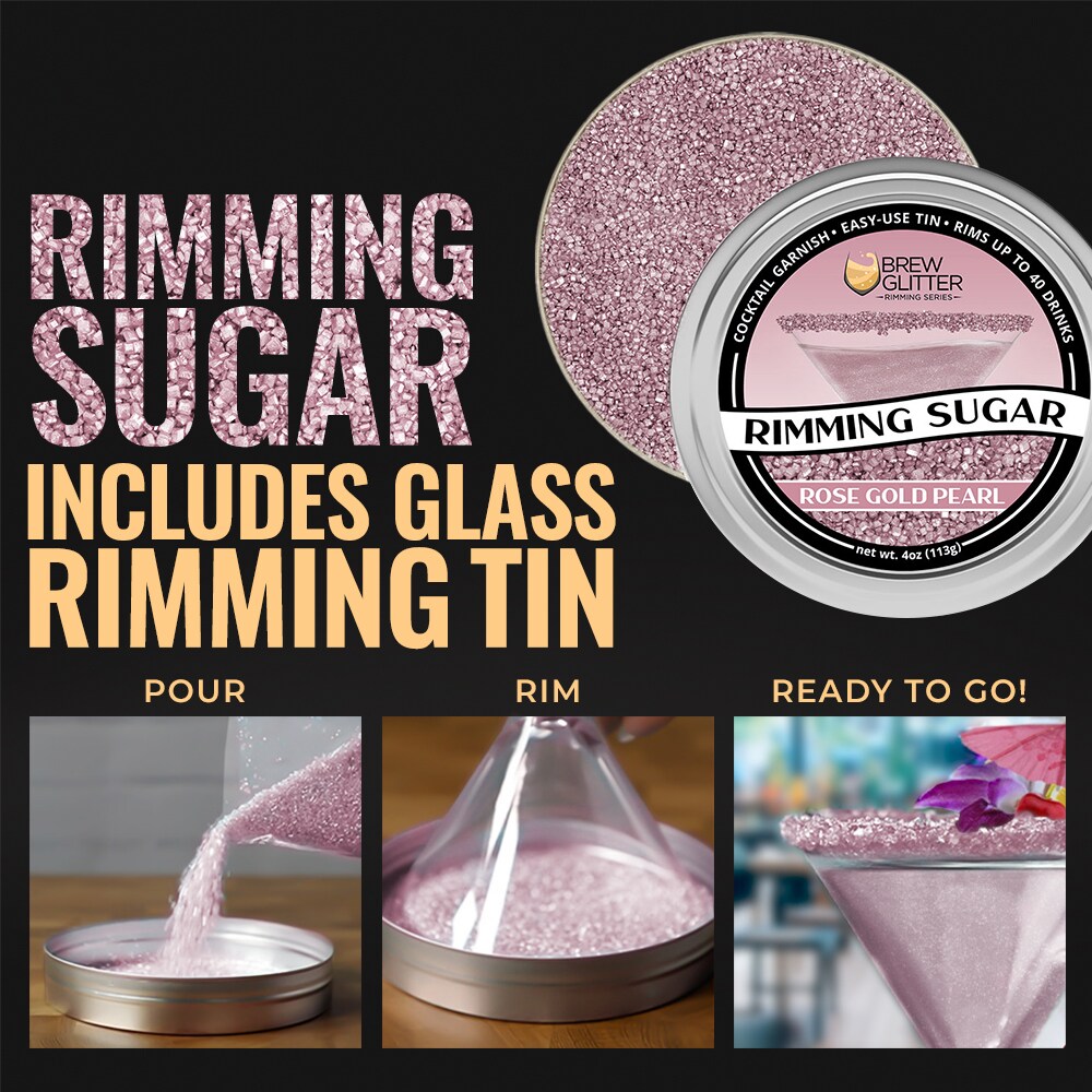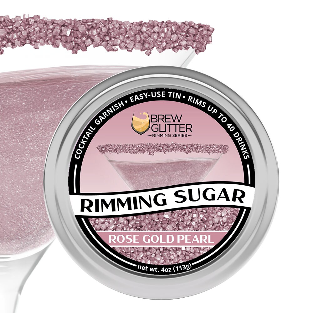 Brew Glitter - Rose Gold Pearl Rimming Sugar (4oz, 1x Bar Tin) Cocktail Garnish for Mixed Drinks & Refreshments