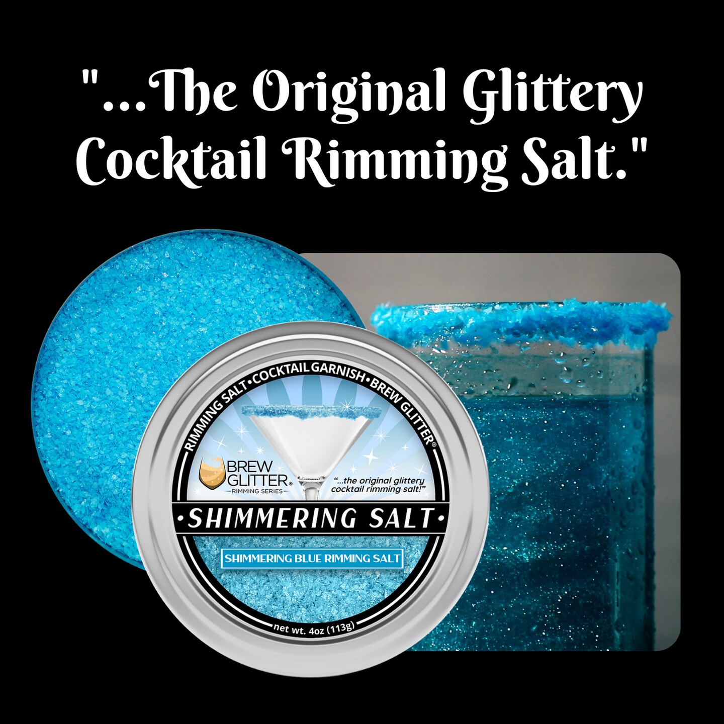 Brew Glitter - Shimmering Blue Rimming Salt (4oz, 1x Bar Tin) Edible Glitter Blended Cocktail Garnish for Mixed Drinks and Beverages