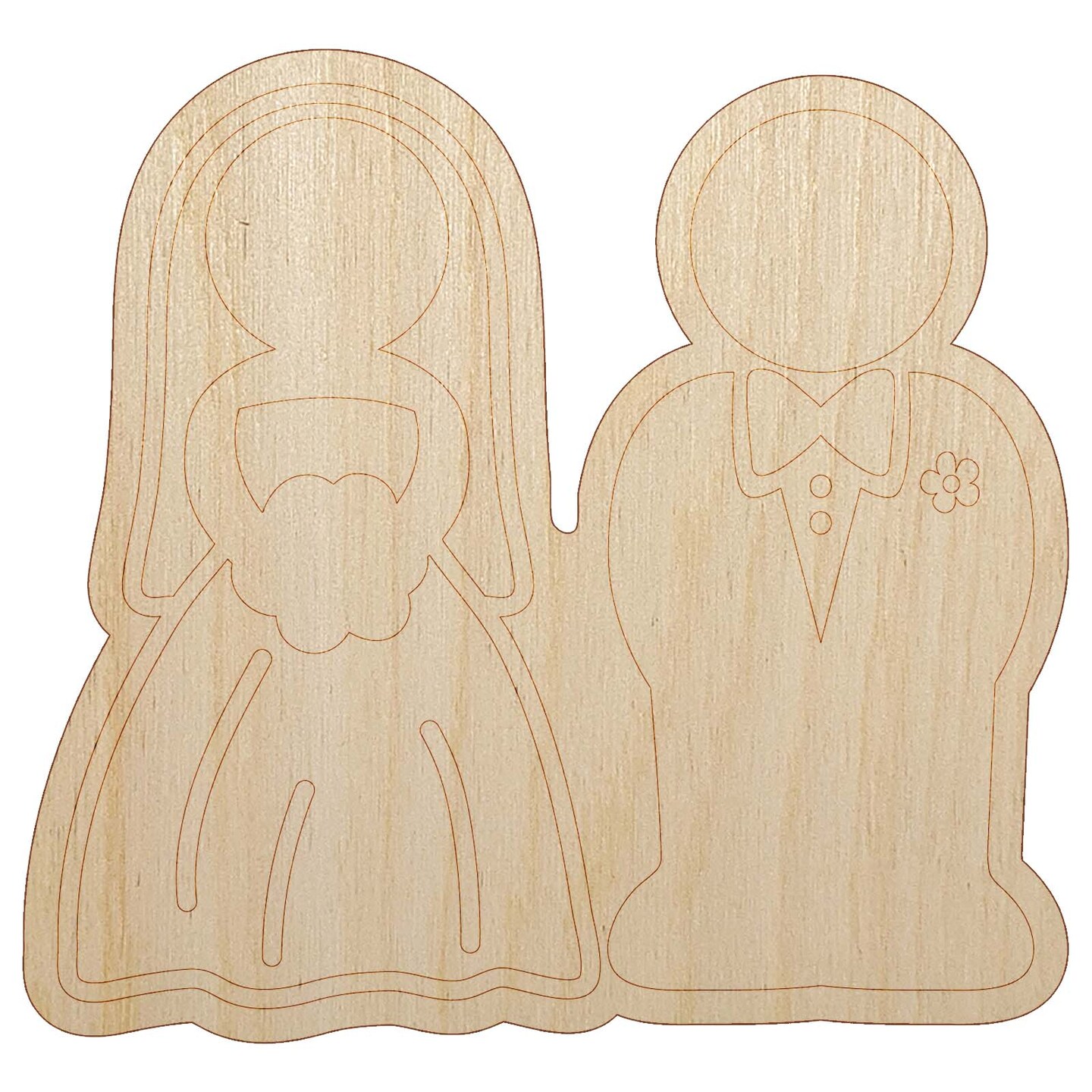 Bride and Groom Wedding Unfinished Wood Shape Piece Cutout for DIY Craft Projects