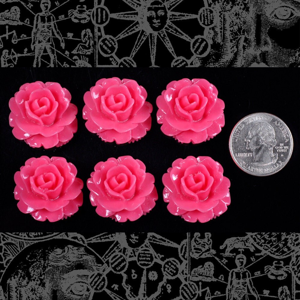 Bright Coral 28mm Rose Cameo Cabochons Set of Six - XXX - Flwr49