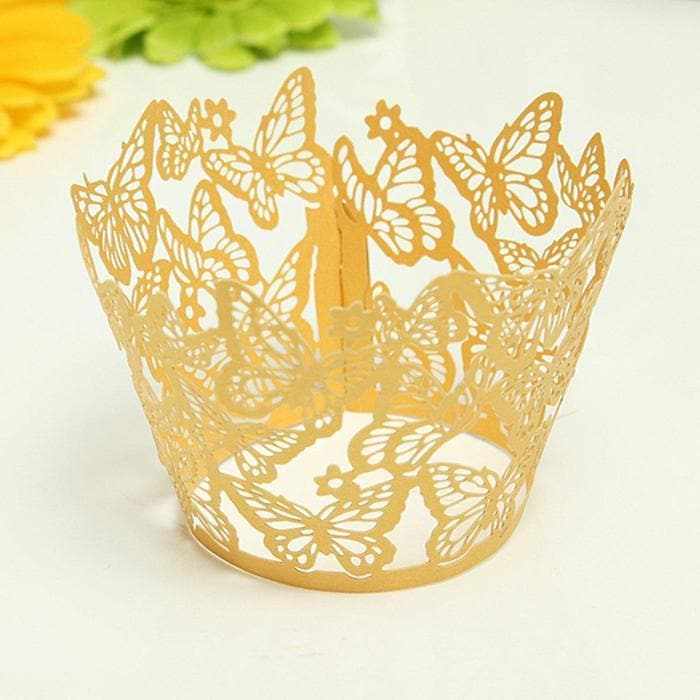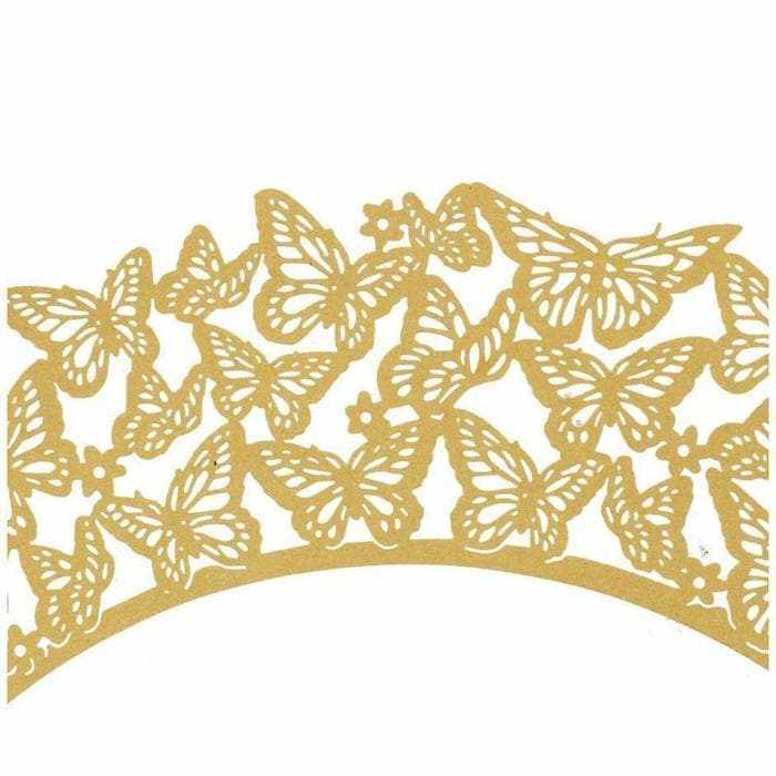 Bright Gold Butterfly Lace Cupcake Wrappers & Liners | 25 PC Set