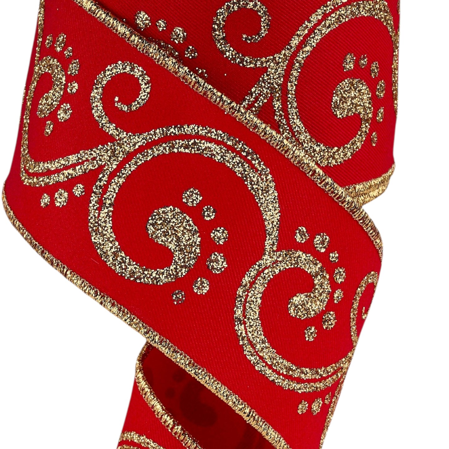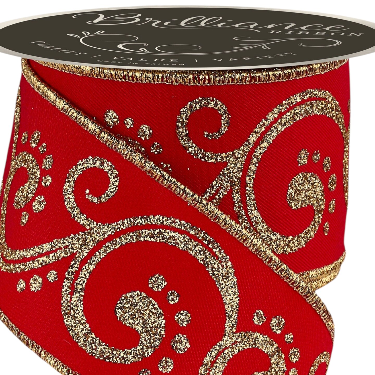 Brilliance 2.5" Red and Gold Filigree Glitter Swirl Wired Ribbon, 10 Yards for Christmas Bows, Wreaths, Gift Wrap, Crafts and Decorations