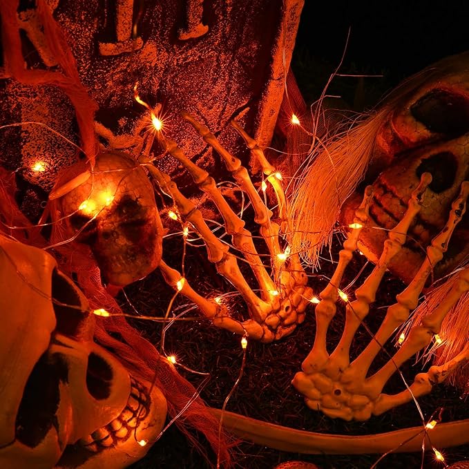 Brizled Orange Fairy Lights, 12 Pack 20 LED Orange Halloween Lights, 6.56ft Battery Halloween String Lights, Indoor Twinkle Starry Lights Silver Wire for DIY Home Halloween Bedroom Party Holiday Decor