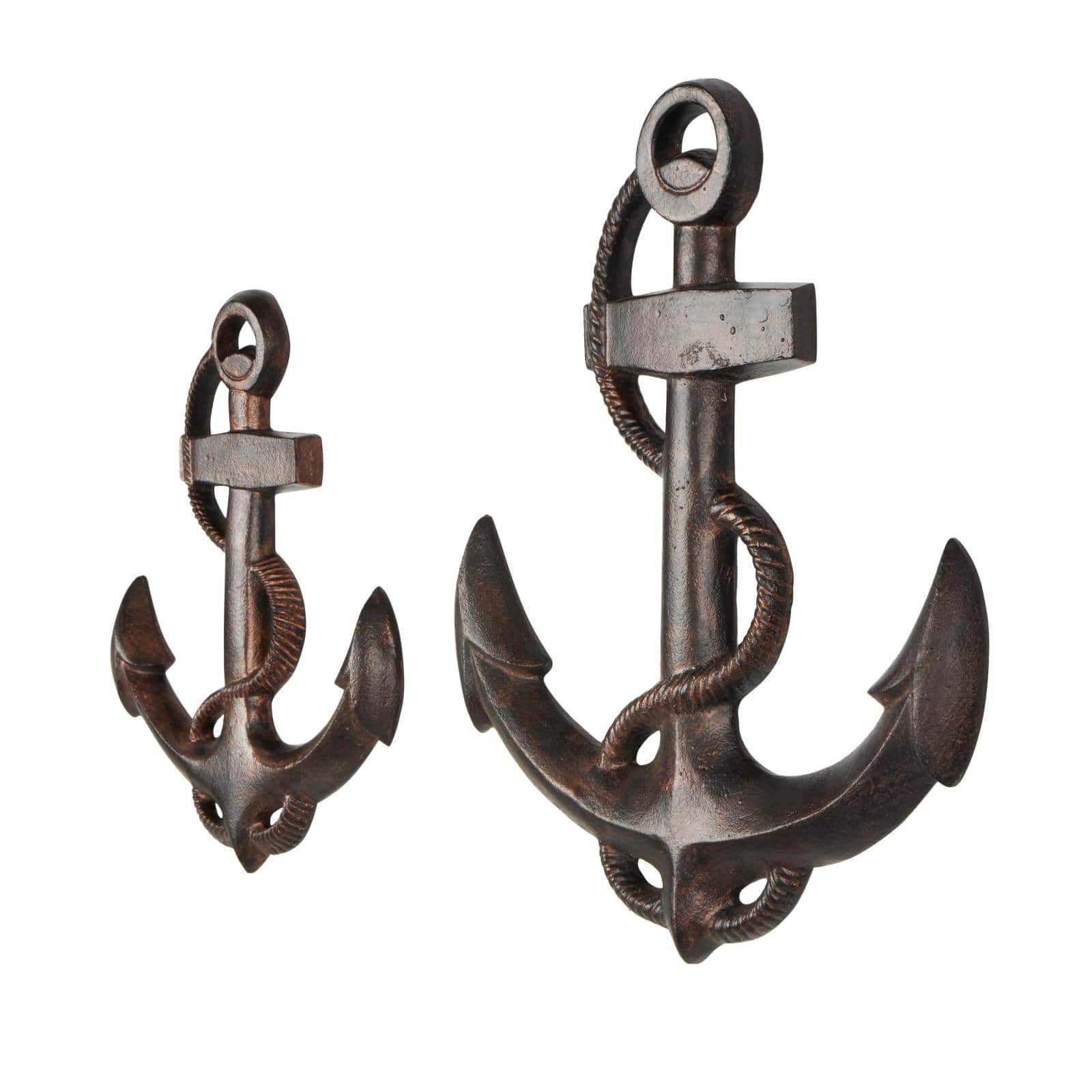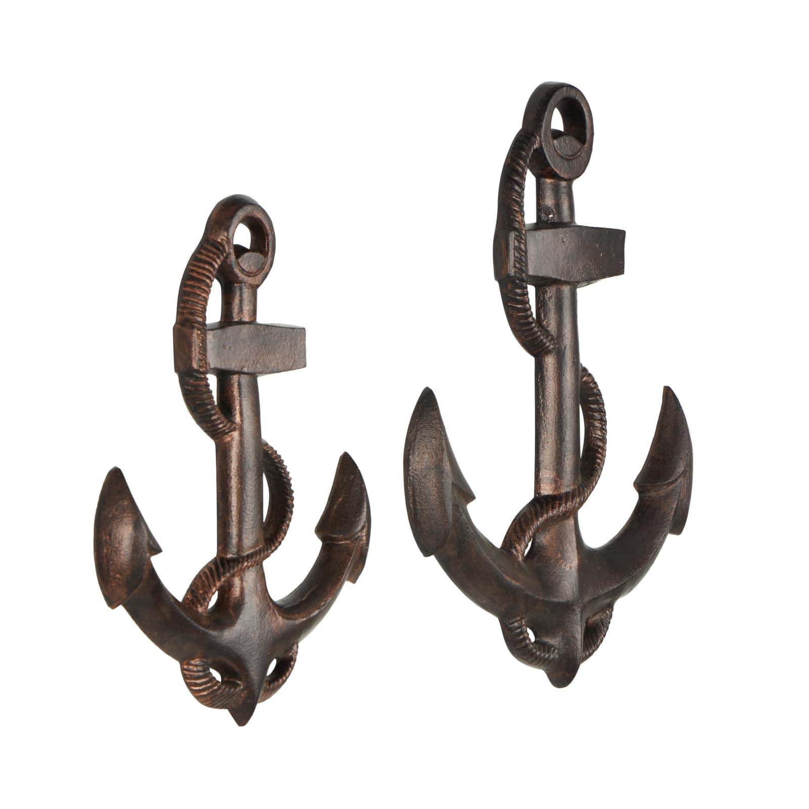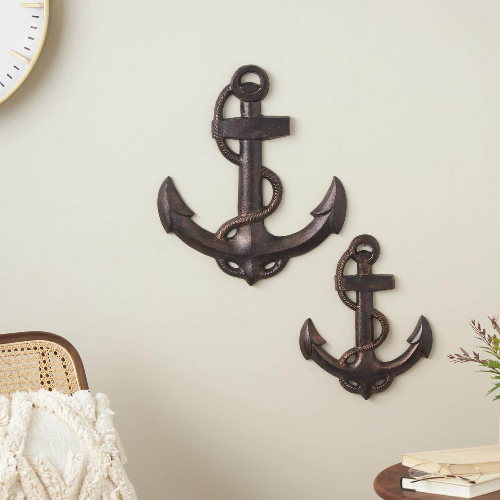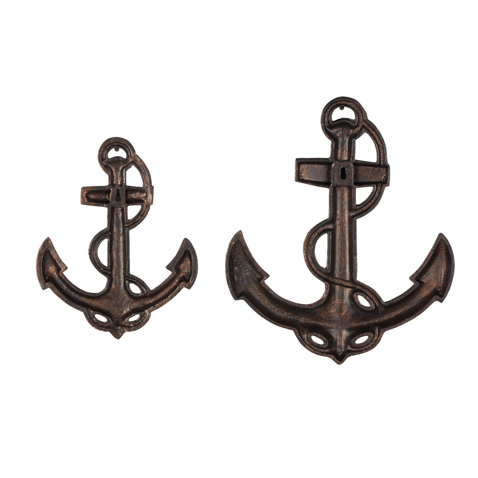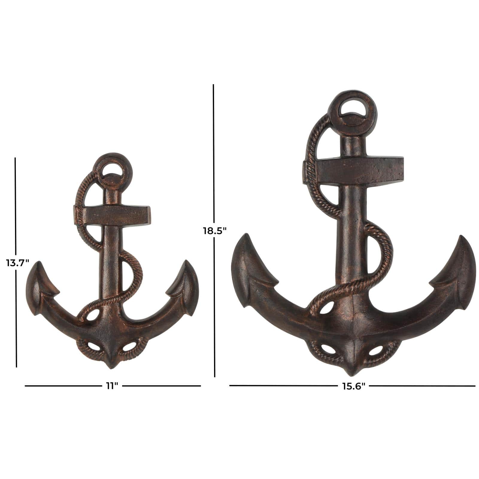 Bronze Aluminum Metal Anchor Weathered Wall Décor Set with Curved Rope Design