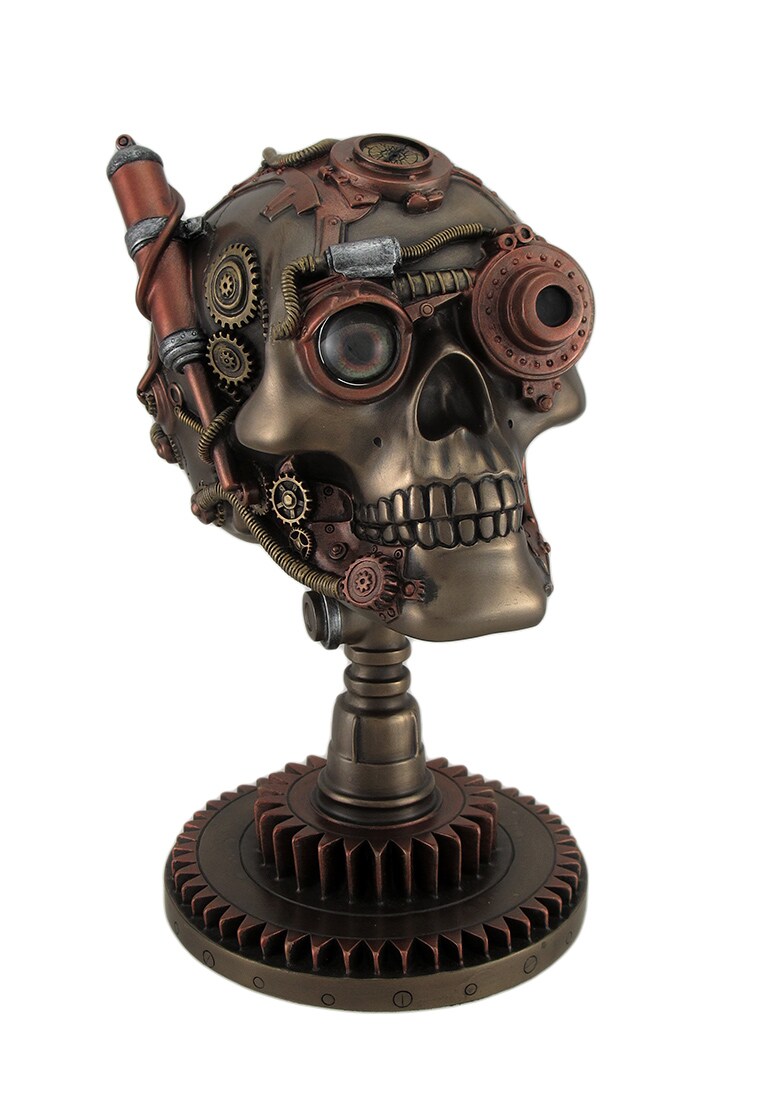 Bronze / Copper Finished Steampunk Skull Statue - Gear Base