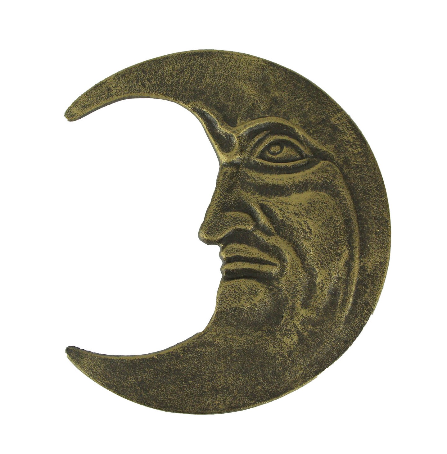 Bronze Finish Cast Iron Crescent Man in the Moon Face Indoor Outdoor Wall Decor