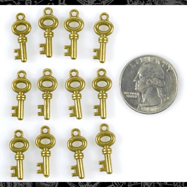 Bronze Finish Small Antiqued Style Key Charms - Set of Twelve - ZB-C13
