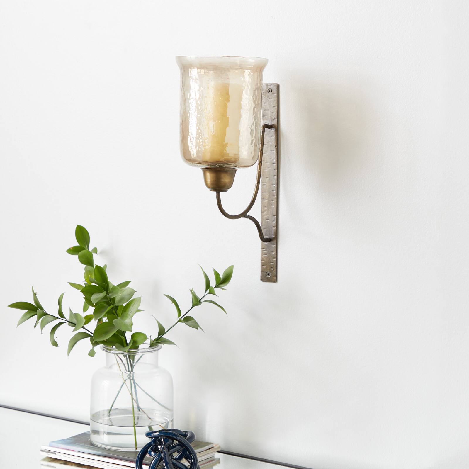 Bronze Iron and Glass Traditional Candle Wall Sconce, 17" x 7" x 9"