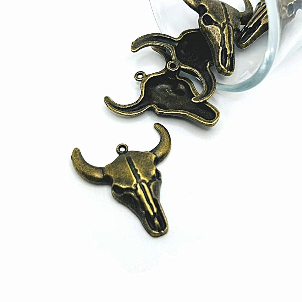 Bronze Steer Cattle Skull Pendant Charms, 32x28mm