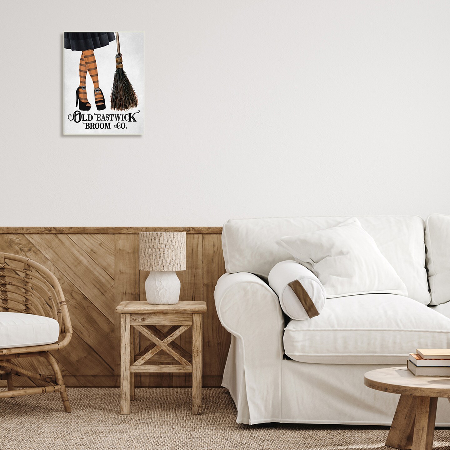 Broom Co. Halloween Sign Witch Striped Stockings Wall Plaque Art