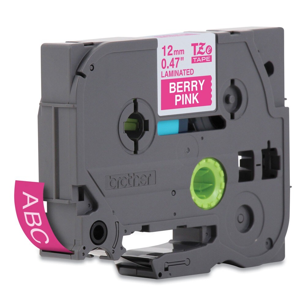 Brother P-Touch 0.47 in. x 16.4 ft. Standard Adhesive Laminated Labeling Tape - White/Berry Pink