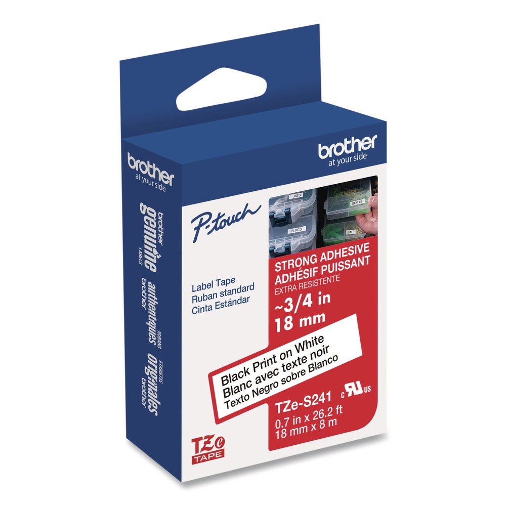 Brother P-Touch 0.7 in. x 26.2 ft. TZe Extra-Strength Adhesive Laminated Labeling Tape - Black on White