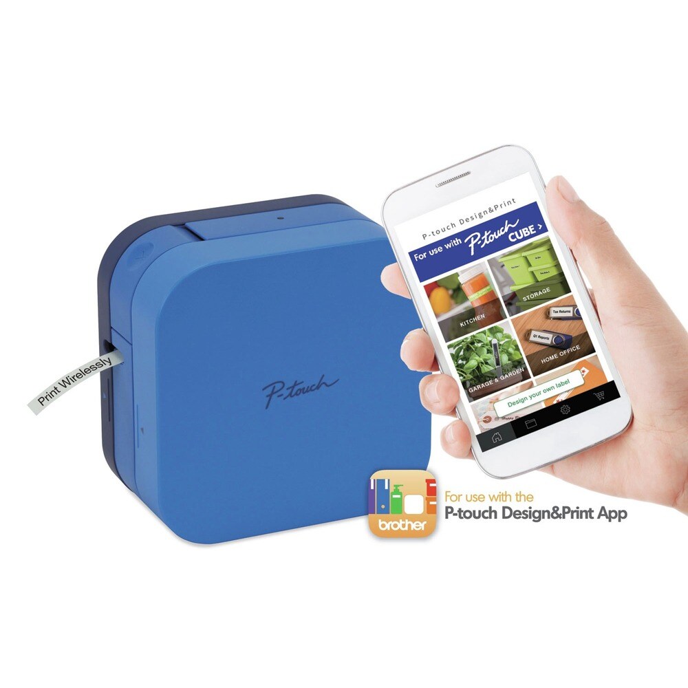 Brother P-Touch PT-P300BTBU P-touch 2.5 in. x 4.6 in. x 4.6 in. 20 mm/s Print Speed Label Maker - CUBE
