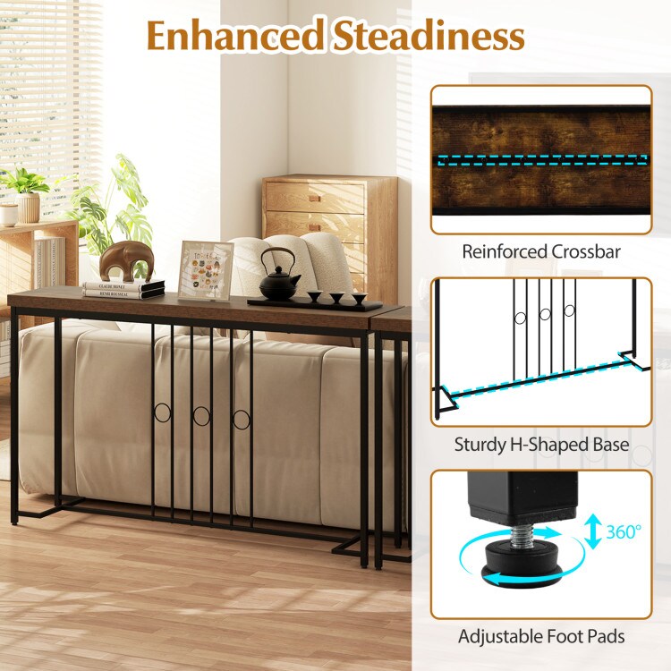 Brown 55" Industrial Console Table with H-Shaped Metal Base