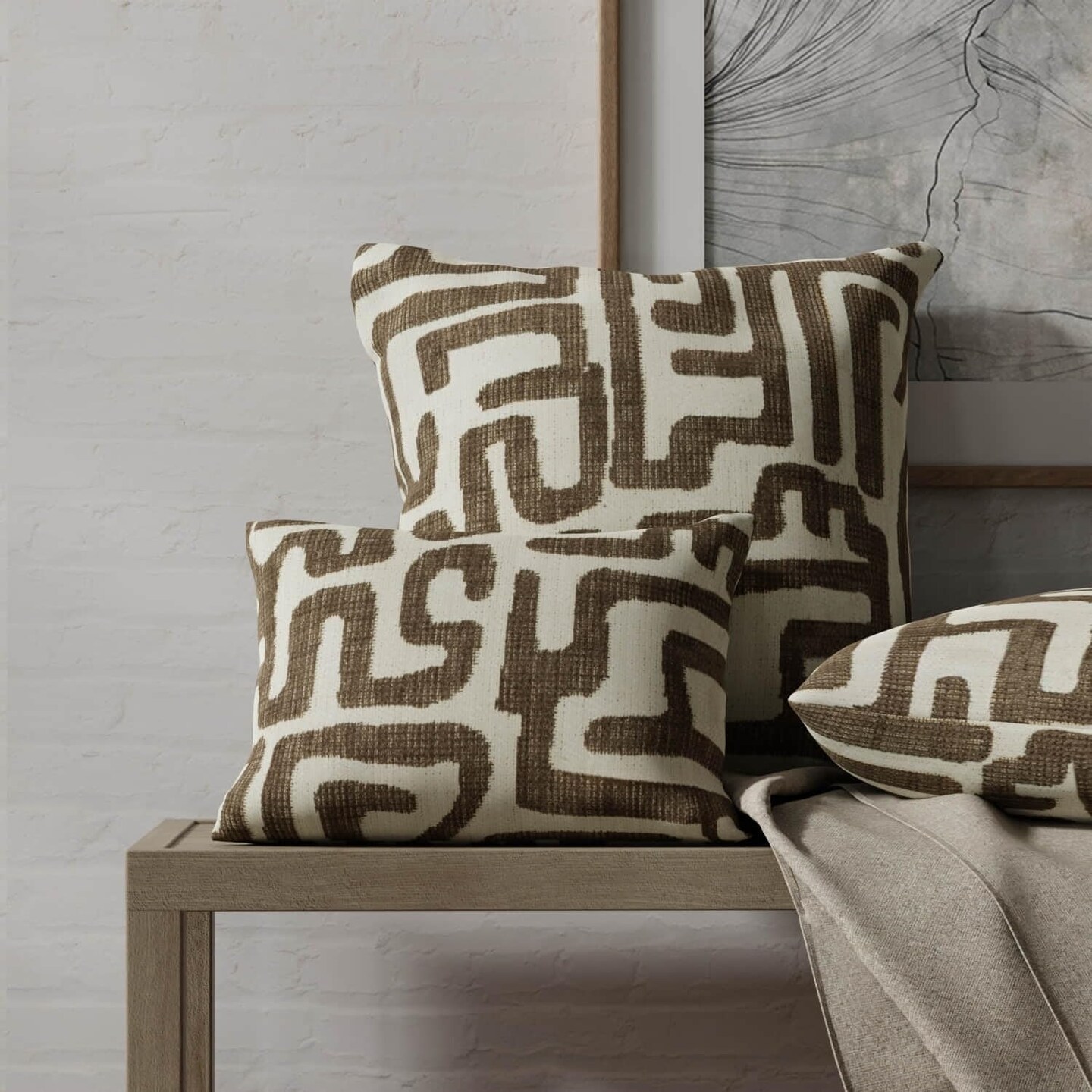 Brown Abstract Geometric Global Woven Pattern Upholstery Fabric by The Yard - SKU: Viking Cocoa