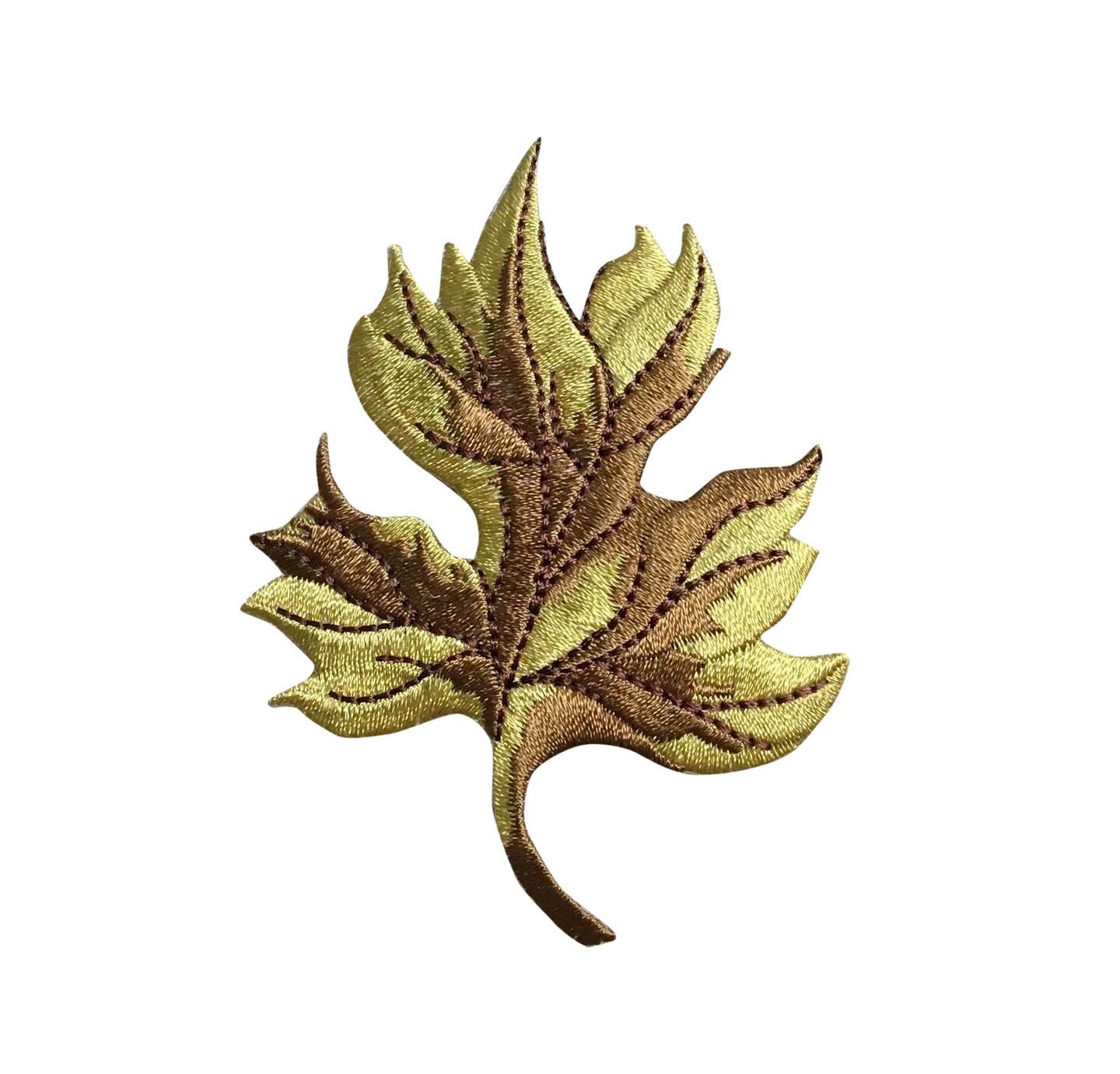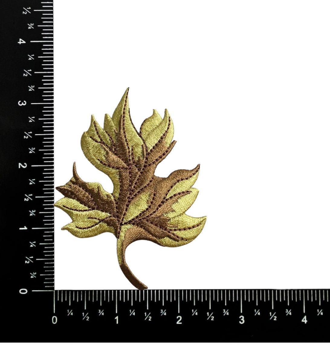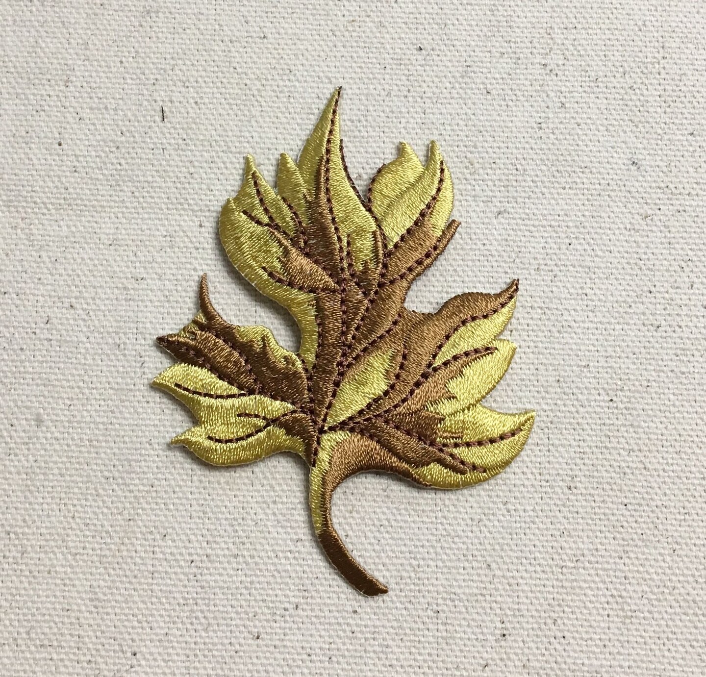 Brown and Gold Tree Leaf, Leaves, Embroidered, Iron on Patch